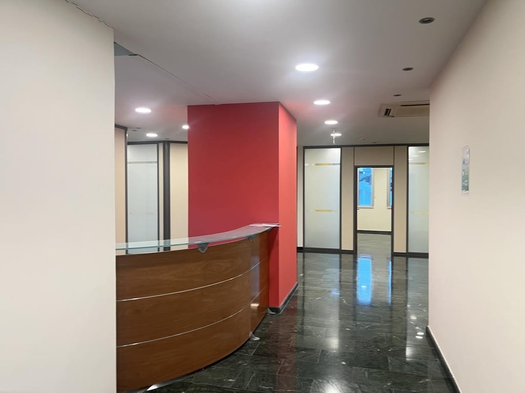 Reference ID: #SA35514 Price details: €1,950,000 This modern office is located in a highly commercial area of the city with easy access to the highway. It consists of 420 sqm of covered spaces, including 11 separate offices, 4 restrooms, 1 kitchen, a reception area, and a 175 sqm basement storage area . Also has 325 sqm of uncovered veranda , and 9 parking spaces in the basement and 1 on the ground floor.