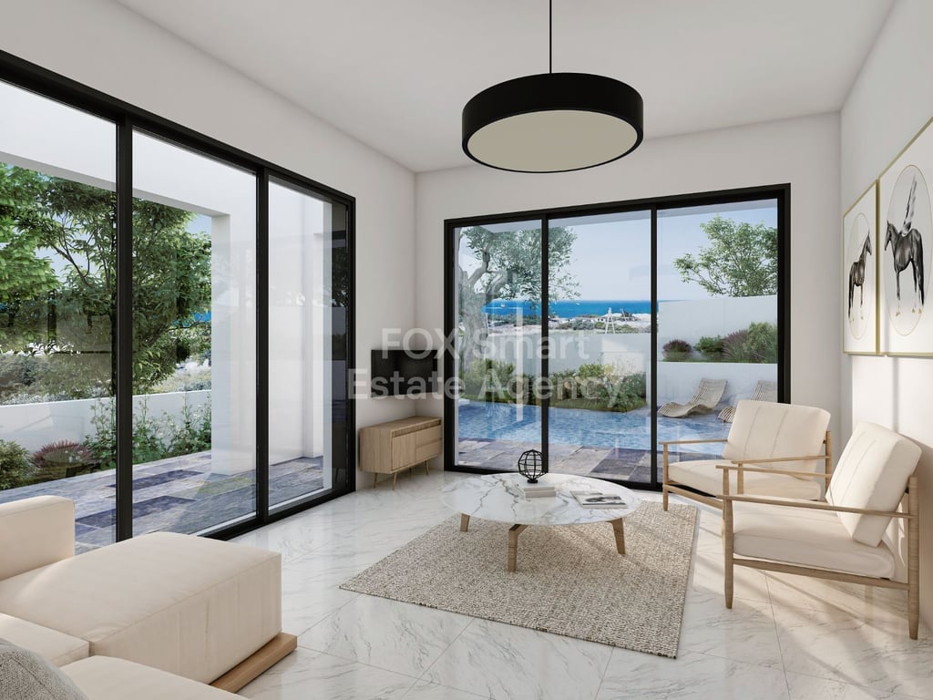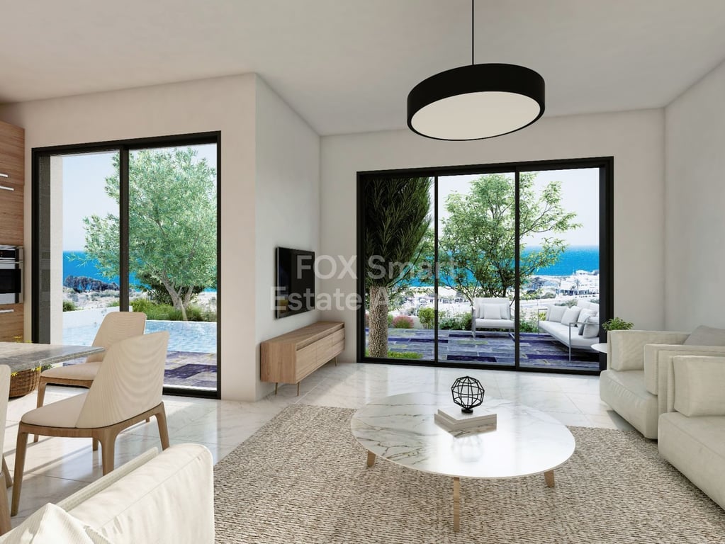 This unique development located in Chloraka Village on the outskirts of Paphos, is characterized by appealing modern architecture with spacious and comfortable areas in green surroundings. These 3-bedroom magnificent villas for sale in Paphos, ingeniously blend the use of white finishes and fair face concrete, with decorative walls also featuring concrete blocks. The location is blessed with scenic views of the sea, is a short walk to the beach and is close to many local amenities.