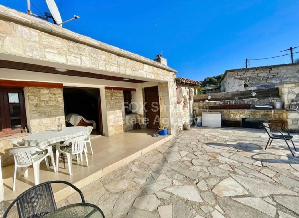 A rare opportunity to own a beautifully preserved heritage home in the peaceful village of Choulou, nestled between Paphos and Polis. This timeless, detached bungalow offers authentic stone architecture, warm rustic charm, and sweeping mountain views. Set on a generous plot, the home features a spacious courtyard with a traditional outdoor oven—perfect for al fresco living. Inside, a cozy living area with fireplace, a stone archway, and wooden ceilings create a welcoming ambiance. The kitchen i...