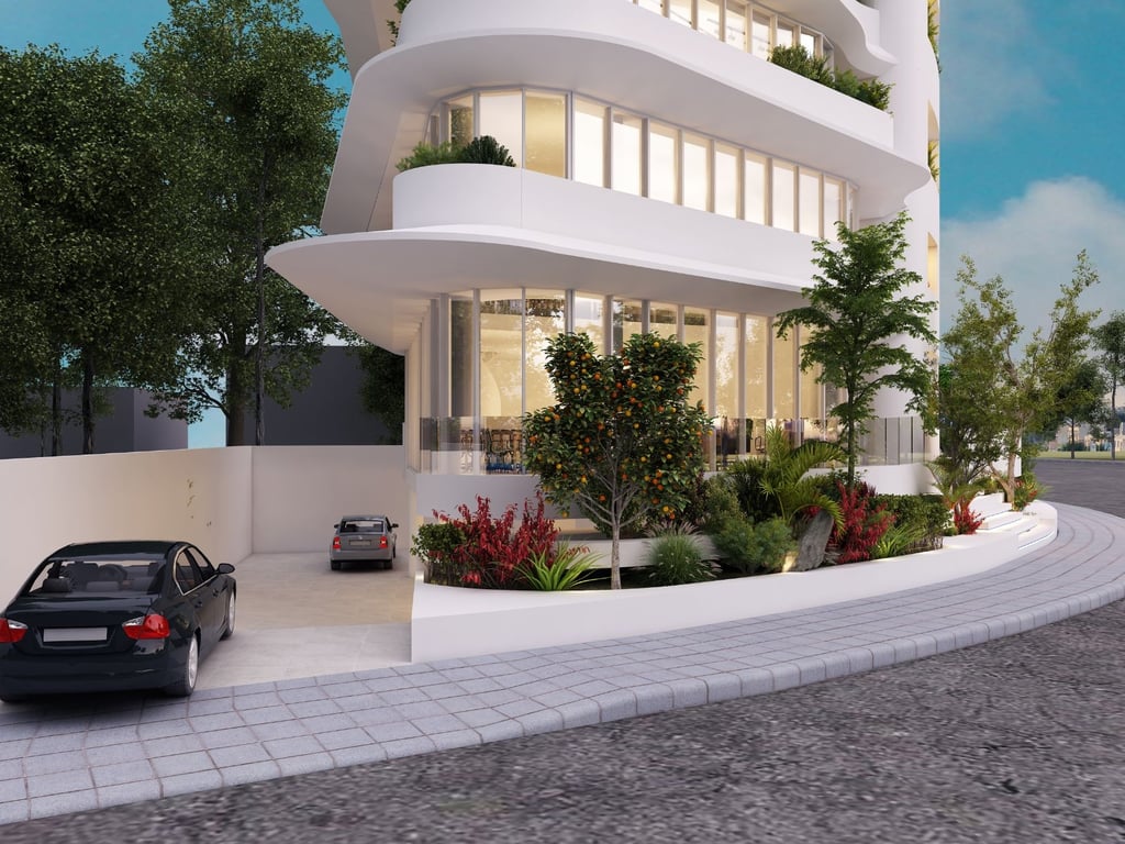 Reference ID: #SA29908 Price details: €3,100,000 +VAT For sale modern commercial building in Paphos consisting of ground, mezzanine, 3 floors and roof garden. The property has a built area of 612sqm, of which 161sqm corresponds to the ground floor, 65sqm useful to the mezzanine, 1st floor 112sqm, 2nd floor 96sqm, 101sqm allocated to the 3rd floor and 77sqm to the gorgeous roof garden. The feeling of space, openness and light follows you all around this building due to its unique curved archite...