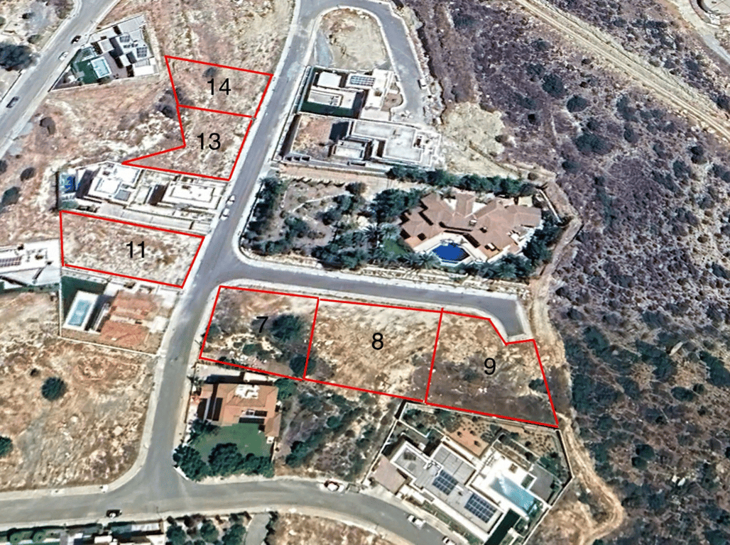 Reference ID: #SA33668 Price details: €700,000 +VAT The land under division comprises several plots with varying sizes, each designated for residential use. The details of the plots are as follows: Plot 14: 755 sq m, Price 700,000+VAT Plot 13: 752 sq m, Price 700,000+VAT Plot 11: 914 sq m, Price 750,000+VAT Plot 7 (Corner Plot): 1003 sq m, Price 800,000+VAT (unobstructed view) Plot 8 (Cul de sac): 988 sq m, Price 800,000+VAT (unobstructed view) Plot 9 (Cul de sac): 916 sq m, Price 800,000+VAT...