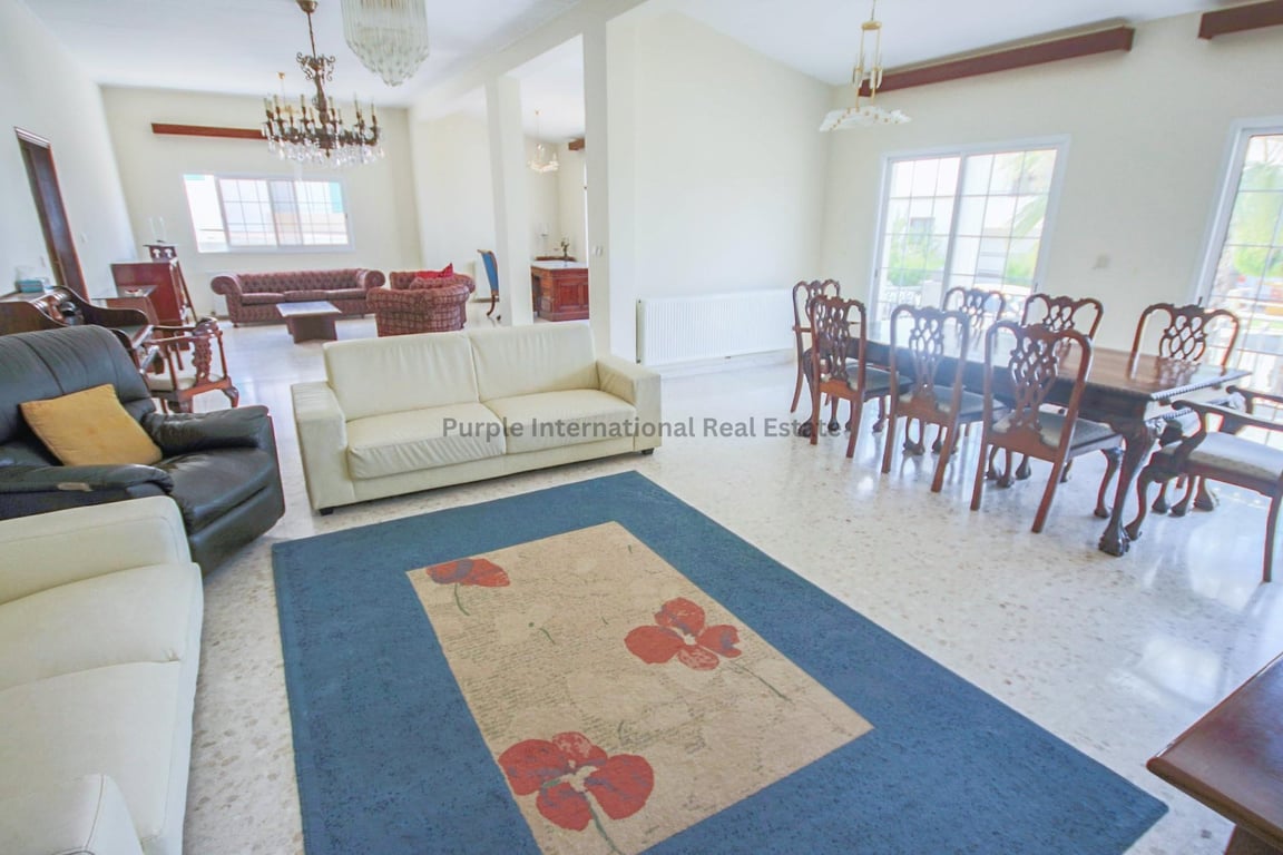 This fabulous five bedroom family home is situated in a quiet residential area of Dherynia. The exterior of the property incorporates attractive features, set on a large plot of land with beautiful landscaped gardens, lush green grass and ample outdoor entertaining areas with covered verandas for sitting and enjoying the views. Upon entering this beautiful property you are welcomed by two good sized lounge areas. Continuing through the house is a comfortable sized dining area with fully fitted...