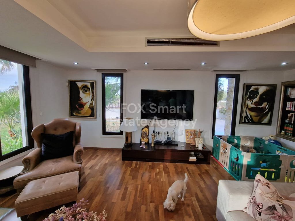 Amazing lifestyle property for sale, Dromolaxia, Larnaca consisting of 6+2 bedroom house with a swimming pool. Fully furnished. High-quality equipment, Miele brand, is installed. Underfloor heating and air conditioning in every room. Garage for 2 cars. Security system: Cameras and alarms throughout the house. The pool is 6×12 m. There is a certificate of ownership of the land. The sale price without furniture and appliances. Located in the Dromolaxia area. A green area around the perimeter and a...