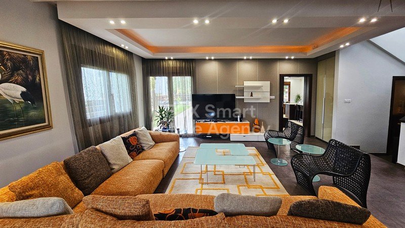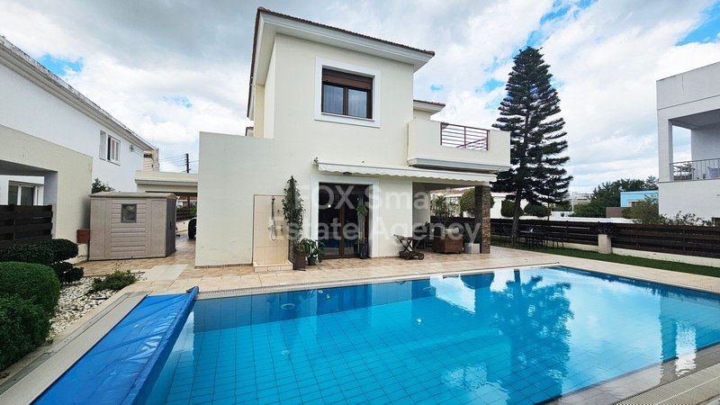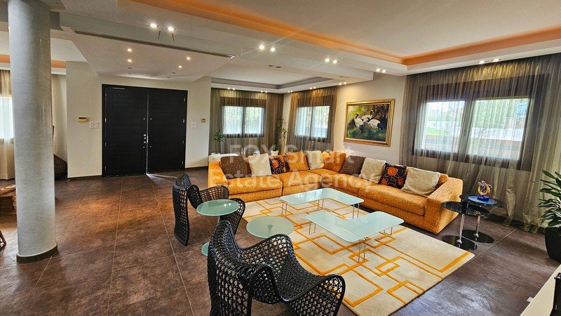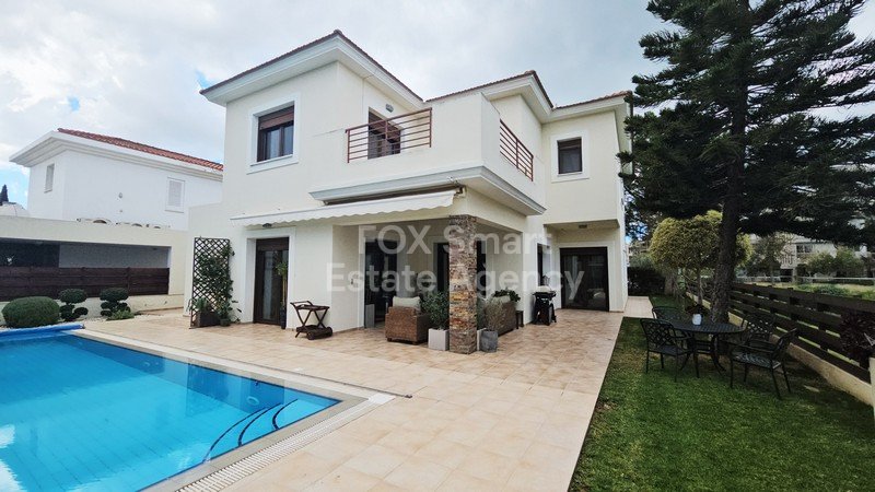 Location - It is located in one of the most high-end areas of Egkomi, in a cul-de-saq close to China Embassy and AlphaMega Hypermarket. - The neighborhood is quiet, family friendly, comprised of beautiful luxury houses External Features - The house was constructed in 2009 with high quality materials and beautiful design. - The large plot (595sqm) adds value to this house, with the beautiful exterior spaces with mature trees, grass, sitting areas BBQ facilities, and of-course the private swimmin...