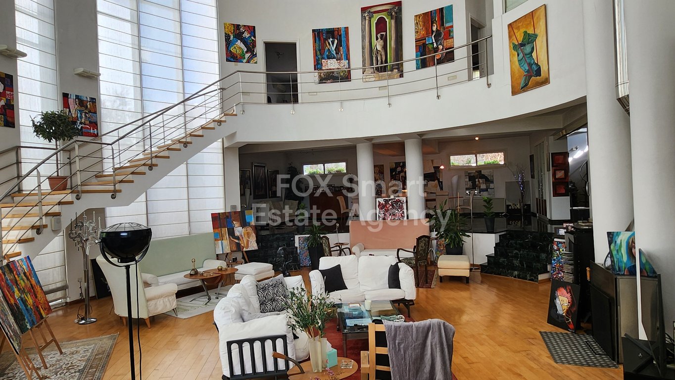Built in 1995 with a reinforced concrete structure, this distinctive residence spans three levels (basement and two main floors). Its bold architectural design—featuring triangular and circular forms alongside expansive glass walls —creates a striking, light-filled living environment. Well-maintained throughout, the property offers strong potential to be refined into a high-end contemporary home. Location: The property is situated in Mont Parnas, Engomi, one of the most desirable residential ar...