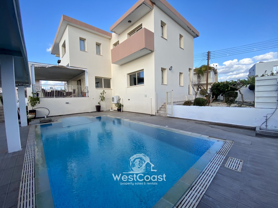 No Title Deeds This beautiful property consists of five double bedrooms, one junior ensuite, and one principle ensuite with walk in wardrobe. The detached villa with 4 meter high ceilings is situated in the picturesque village of Emba, Paphos. The beautiful village is just 2 km from the city center, which allows for easy access to all amenities and just a short drive to the International School of Paphos , which makes it a perfect family home. This property boasts a large swimming pool with a s...