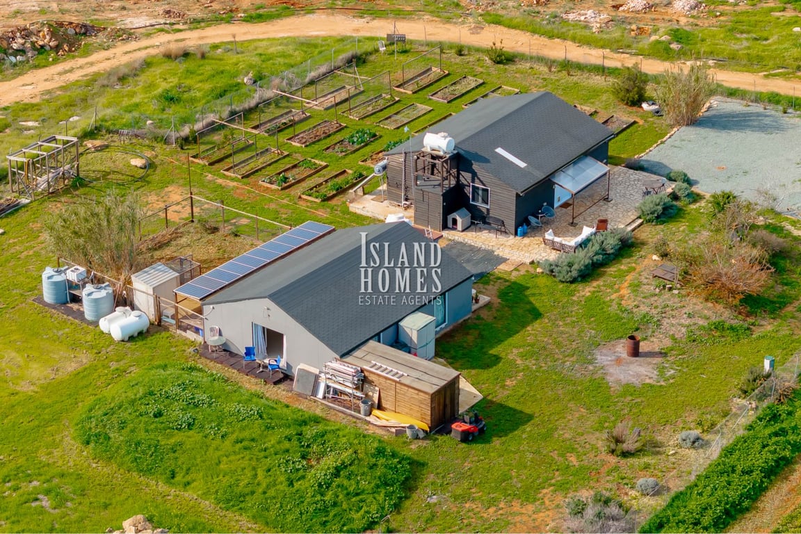 2 bedroom off grid bungalow with separate studio annex on a fantastic 4,405m2 plot with photovoltaic system, battery storage and filtered agricultural water in remote location of Frenaros FRE183This is a fantastic opportunity to own a unique property with a spectacular 4,405m2 of land. This beautifully presented bungalow has a generous size front veranda with covered entrance porch which leads into the spacious and open plan living, dining and kitchen area. The kitchen is a superb size, idea...
