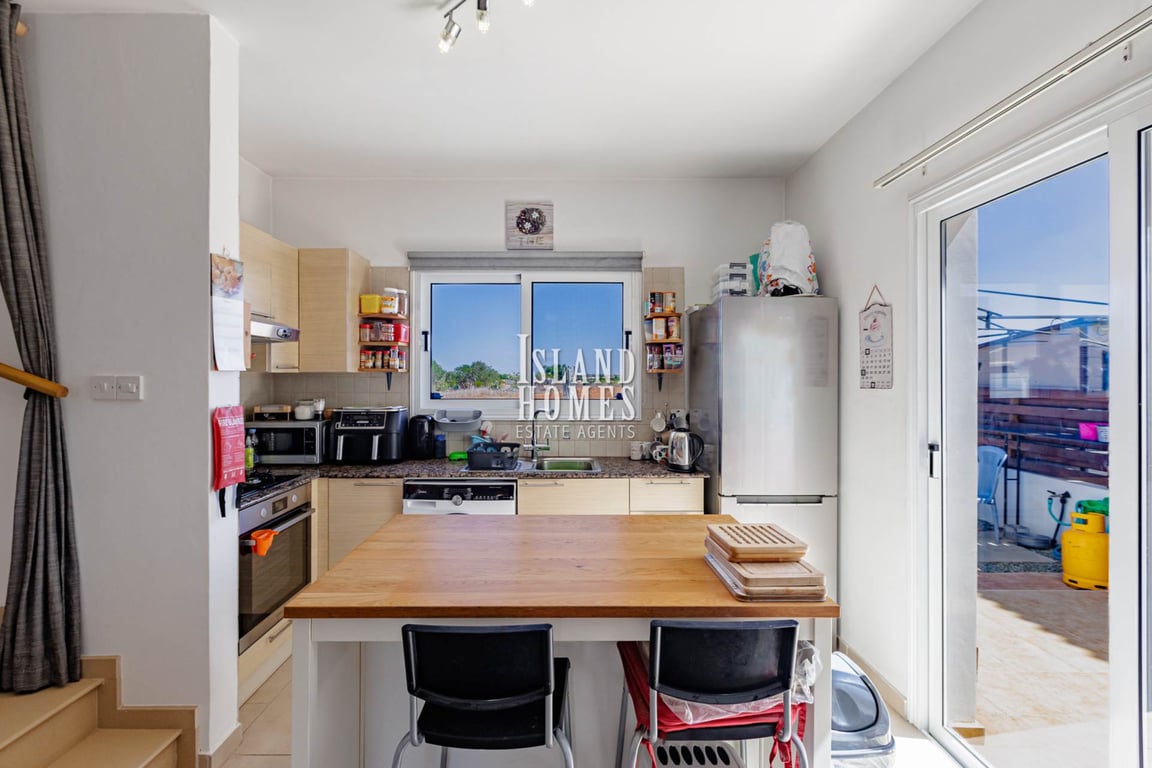 2 bedroom, 1 bathroom, 1 WC, semi detached house with covered parking, and TITLE DEEDS READY TO TRANSFER on desirable complex located on the outskirts of the popular village of Frenaros - PIF109This semi detached property sits on a well maintained development on the outskirts of Frenaros village. With a gated driveway offering off street covered parking the property includes a raised side veranda and a seating area at the rear. The front door enters into the open plan living, dining and kitchen...
