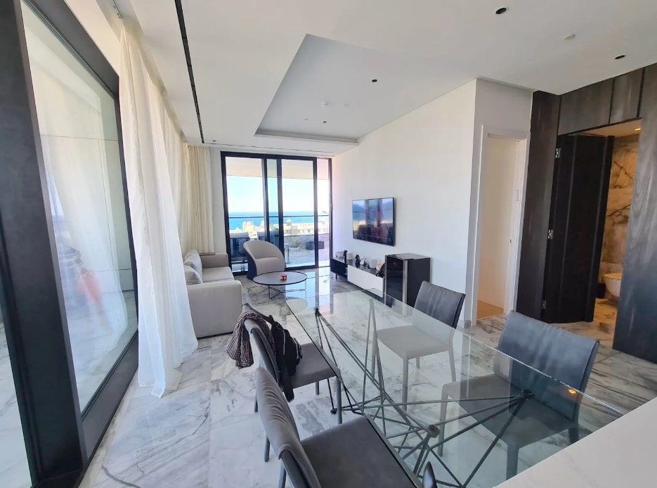 1 bedroom exclusive apartment for sale in one of the landmark skyscrapers in the heart of Limassol tourist area. The building enjoys magnificent panoramic sea views and it is perfectly located on the main sea road, with shops, bars, restaurants and coffee shops within walking distance. Tenants of the building can enjoy amazing facilities such as a swimming pool, tennis court and gym. This spacious 1 bedroom apartment is located on 9th floor, with a total covered area of 70 sqm and 2 covered v...