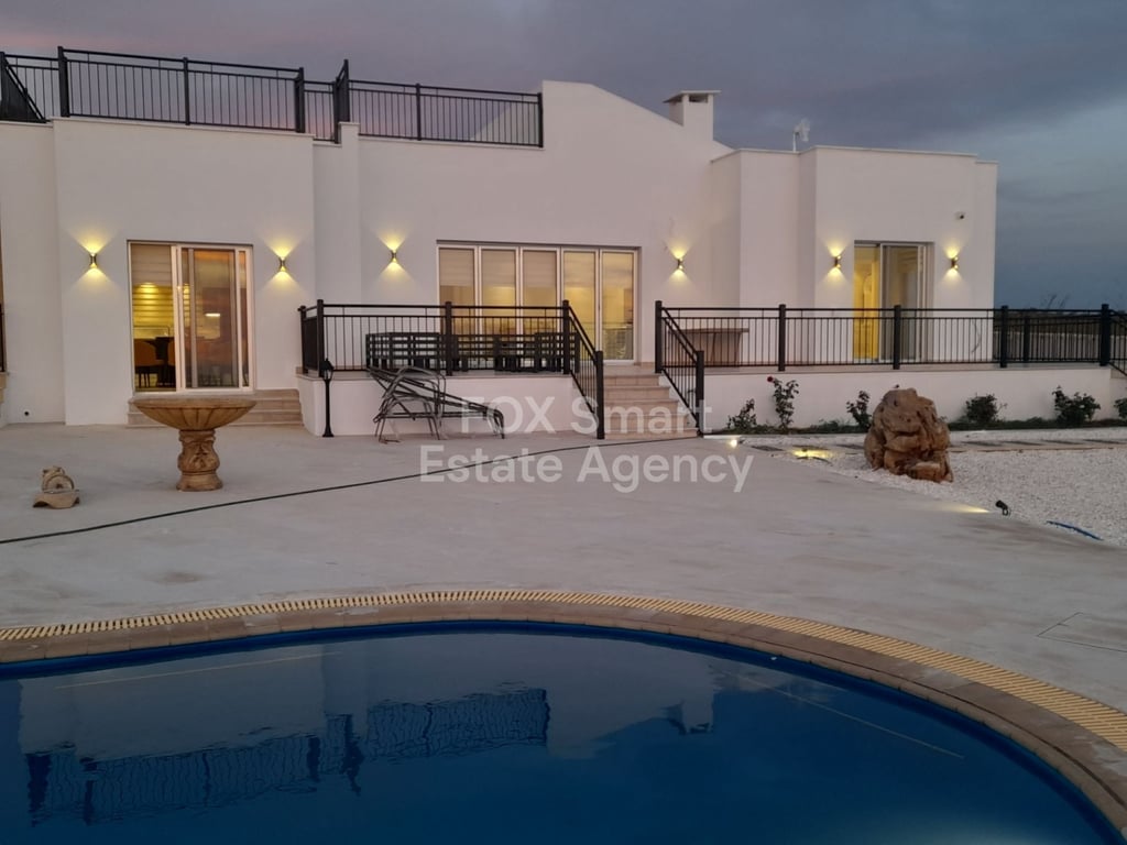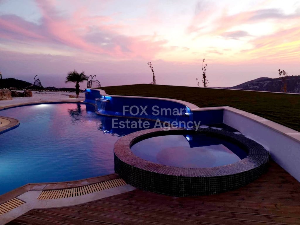 This amazing villa is located in the idyllic village of Kathikas in Paphos, Cyprus. This 5 bedroom 5 bathroom furnished villa boasts mesmerizing sea views and breathtaking sunsets viewed from the gardens or roof top terrace… From the moment you enter this property, you are transported to an amazing world of luxury and tranquility. Everything from the designer kitchen to the cozy lounge area ooze pure luxury and has everything you would expect from a residence of this caliber. This beautif...