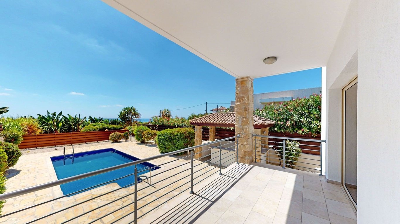 Sea front four bedroom villa located within an exclusive area of Kissonerga village is a short drive to a plethora of amenities.. Recently renovated, this exceptional property is comprised of an open plan living/dining and kitchen area a guest w/c and two inviting bedrooms that both benefit from ensuite facilities. Lines between interior and exterior are all but erased, with the spacious living area opening out to a well sized covered veranda, BBQ area, an immaculately maintained landscaped ...