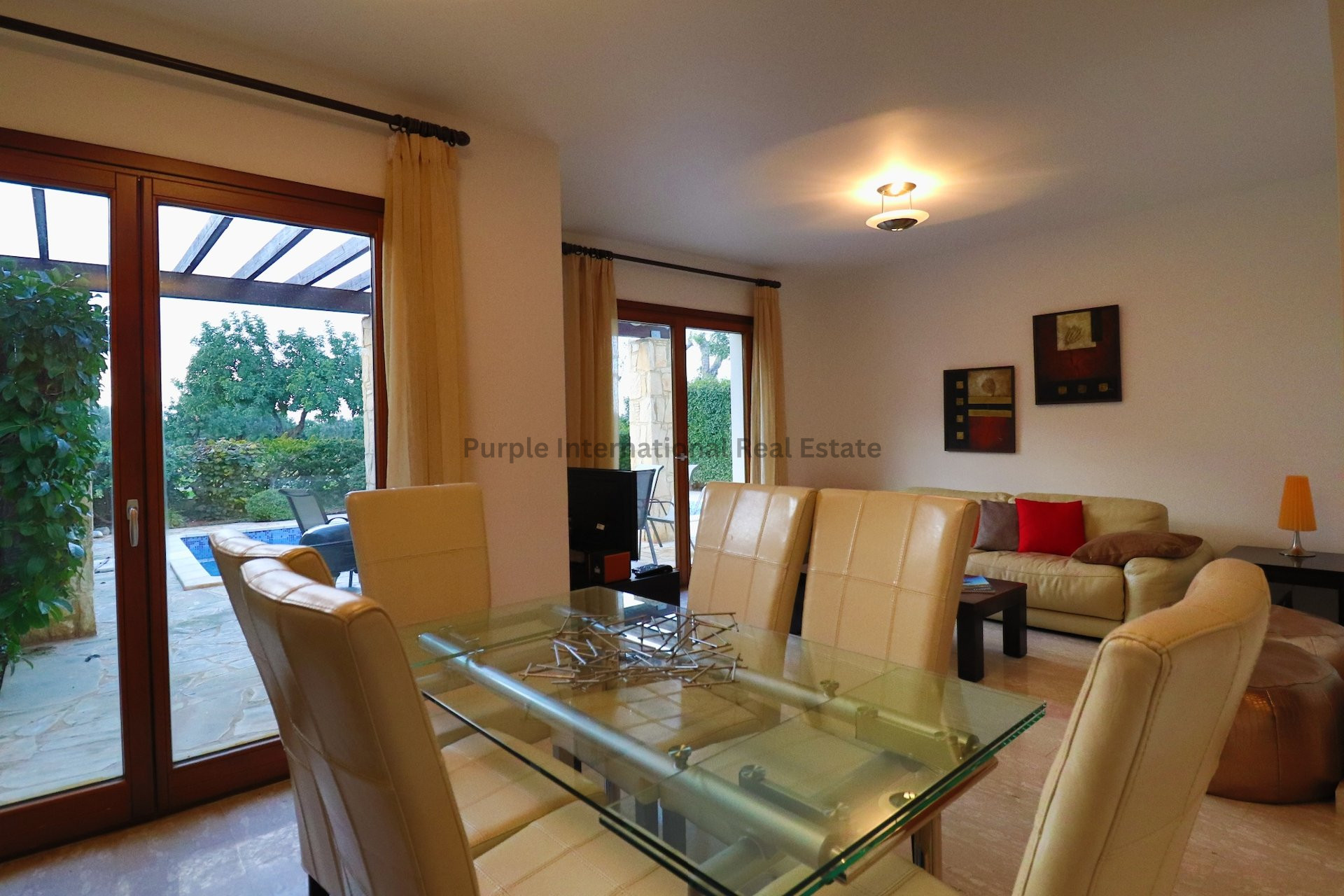 We proudly present to you a magnificent 3-Bed Junior Villa in the 5-Star Aphrodite Hills Golf and Leisure Resort. This stunning property is situated in the elite project of Hestiades Greens, in a prominent position overlooking the first tee, that is built next to the stunning clubhouse of this fabulous award winning golf resort. As you approach the property you are greeted with a spacious entrance with mature trees and shrubs and large private parking. Entering the property you will find a ver...