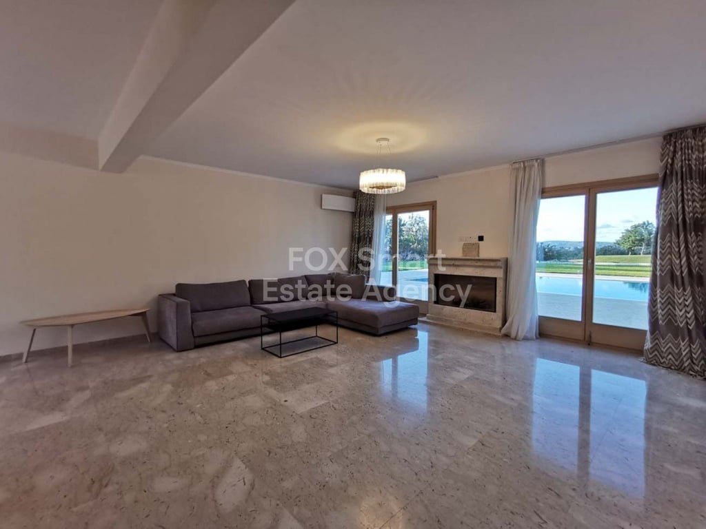 This amazing luxurious villa sits on a large double plot and has been designed and constructed with very high-end finishes. Located on the Western Plateau, it is within walking distance to the village square and offers brilliant views over Hole no.1’s green on the splendid PGA National Golf Course in Aphrodite Hills Resort. This magnificent villa has been designed to maximise the space throughout offering 2 beautiful living areas, dining areas, a large fully equipped kitchen with pantry complete...