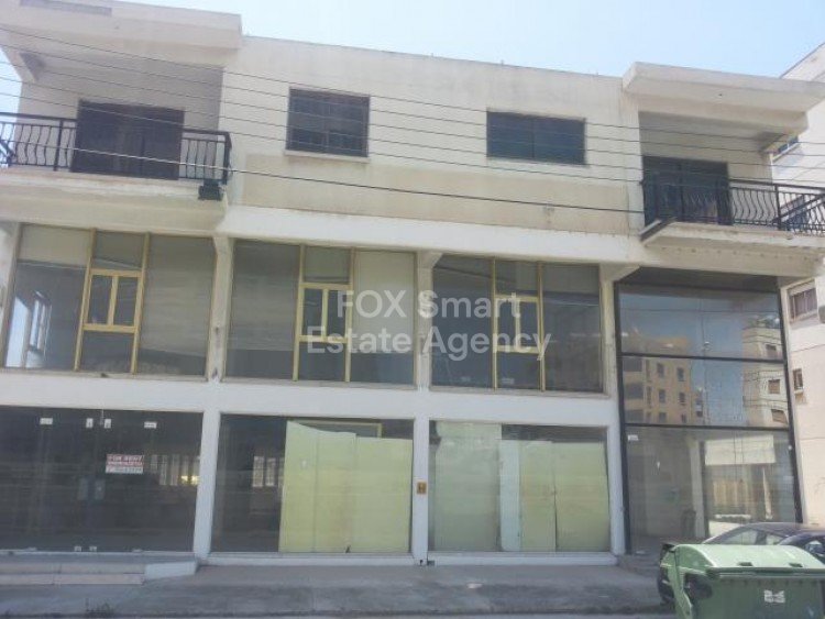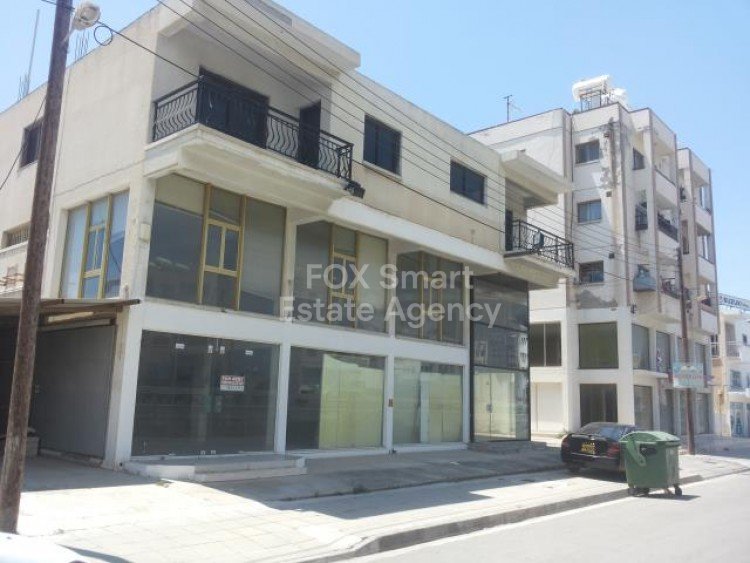 Building with 2 shops downstairs, ,mezzanine and three bedroom flat upstairs.A building in a land 531m2. The eastern shop is 185m2 ground floor and 49m2 mezzanine. The western shop is 32m2 ground floor and 49m2 mezzanine.Upstairs is a three bedroom flat 70m2.