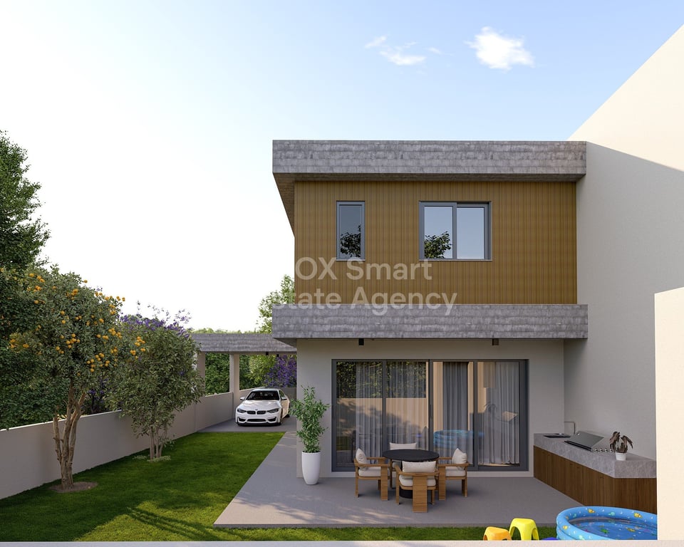 Location • Situated in the prestigious Laiki Sporting Club area, Latsia, Nicosia. • Quiet and peaceful neighborhood with excellent access to the motorway and Nicosia City Centre. External Features • Modern architectural design on a 244 sqm plot. • Spacious garden (56 sqm) and courtyard, featuring both covered and uncovered verandas. • Trendy architecture combined with eco-friendly technologies for a contemporary and sustainable lifestyle. Internal Characteristics • Total internal area: 1...
