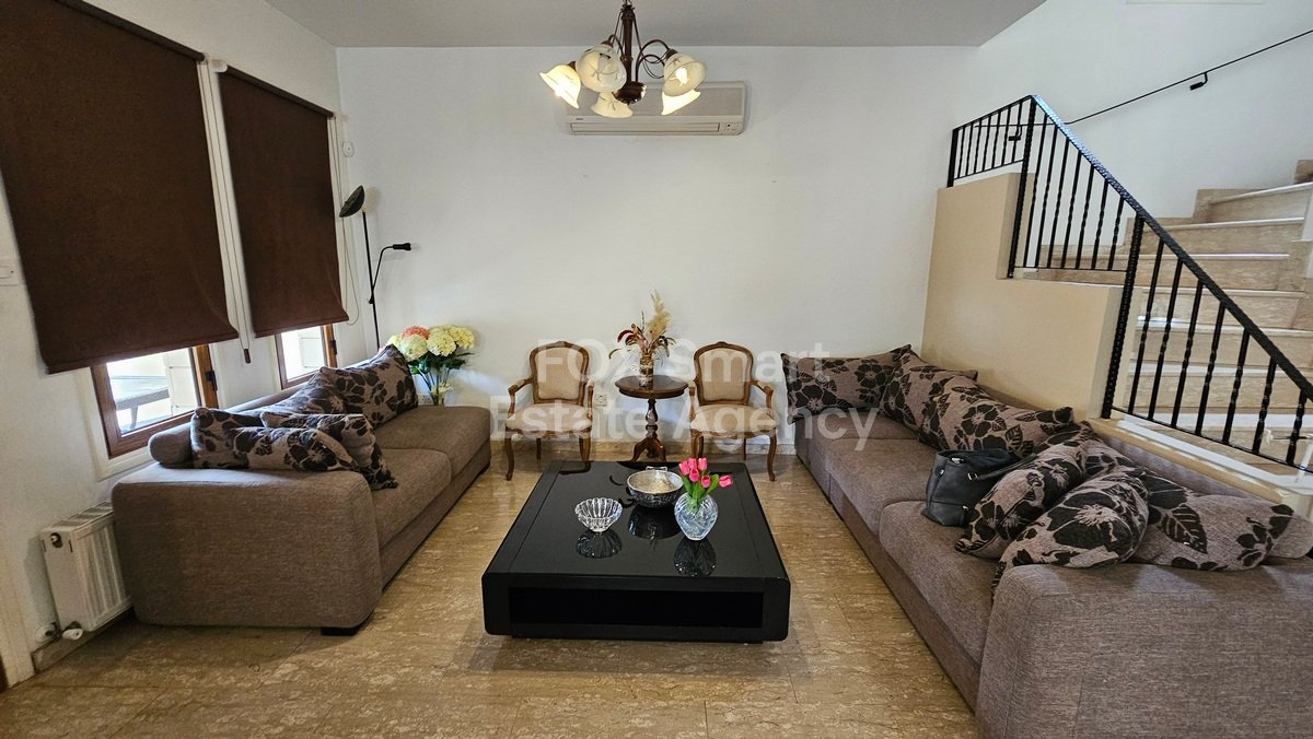 Location: • Situated in a quiet and peaceful neighborhood. • Within walking distance of a range of amenities, including coffee shops, supermarkets, parks, and schools. • Offers convenient access to all areas of Nicosia and major highways. External Features: • Well-maintained exterior, though some interior renovation may be needed. Internal Features: • Spacious and bright interior with 190 sq.m of covered living space, plus a 30 sq.m covered veranda. • Total plot size: 288 sq....
