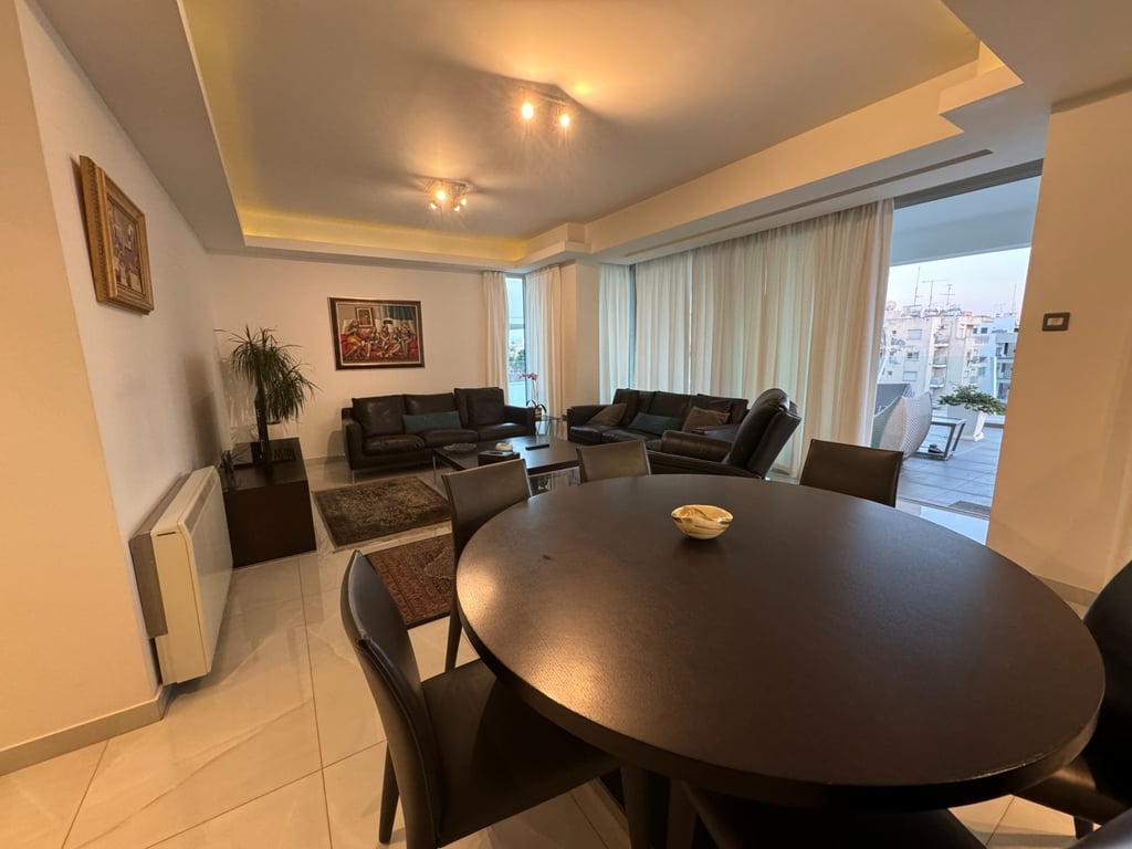 Reference ID: #SA33878 Price details: €675,000 +VAT Three bedroom penthouse for sale in Neapolis area just 250m from the beach, in Limassol district. The Master bedroom is with en-suite shower and its own balcony. One bedroom with small balcony currently converted into an office. It consists of:1 bathroom, 1 shower, 1 guest toilet, Fully equipped kitchen, Spacious, bright, and airy living room, Spacious storage room, Private covered parking-Extra parking available for guests, Jacuzzi on verand...