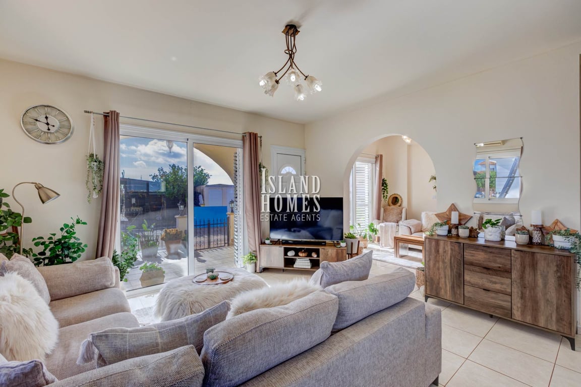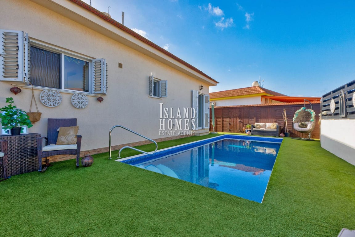 2 bedroom bungalow with the potential to be easily restored to its original 3 bedroom layout, 2 bathrooms and a private SWIMMING POOL, located in a quiet cul-de-sac on the outskirts of the popular village of Liopetri - PDL106This is a fantastic opportunity to purchase a beautifully presented home. Originally a 3 bedroom bungalow, the property is currently being used as a 2 bedroom residence with a large open plan living, dining and kitchen area as well as a cosy snug lounge. Upon entering this b...