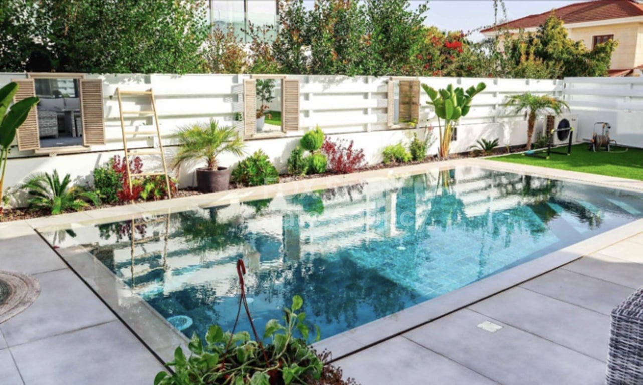 Five-bedroom house-villa available for sale in Livadia Touristic area,Larnaca. The villa offers a high level of luxury experience. There are 2 floors. On the ground floor there is a luxurious dining area with high open ceiling with stunning crystal chandelier and marble floors, to the right is the living area with view to the pool and to left is the beautiful Italian kitchen with high end luxury finishes. Further, there is a bedroom that can be used as an office or a playroom. Guest bathroom wi...