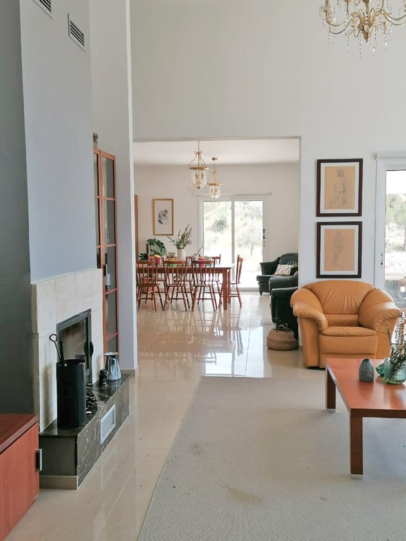 This impressive four bedroom house is a true oasis of calm and tranquility, situated on a vast 9365㎡ land in a secluded environment, just a 15 minute drive from the bustling city of Limassol. As you approach the property, you'll be struck by the serene beauty of the surroundings, with lots of lush greenery and a small artificial lake opposite the house, creating a picturesque and idyllic setting. The interior is beautifully designed, with a spacious open-plan living and dining area, a fully equi...