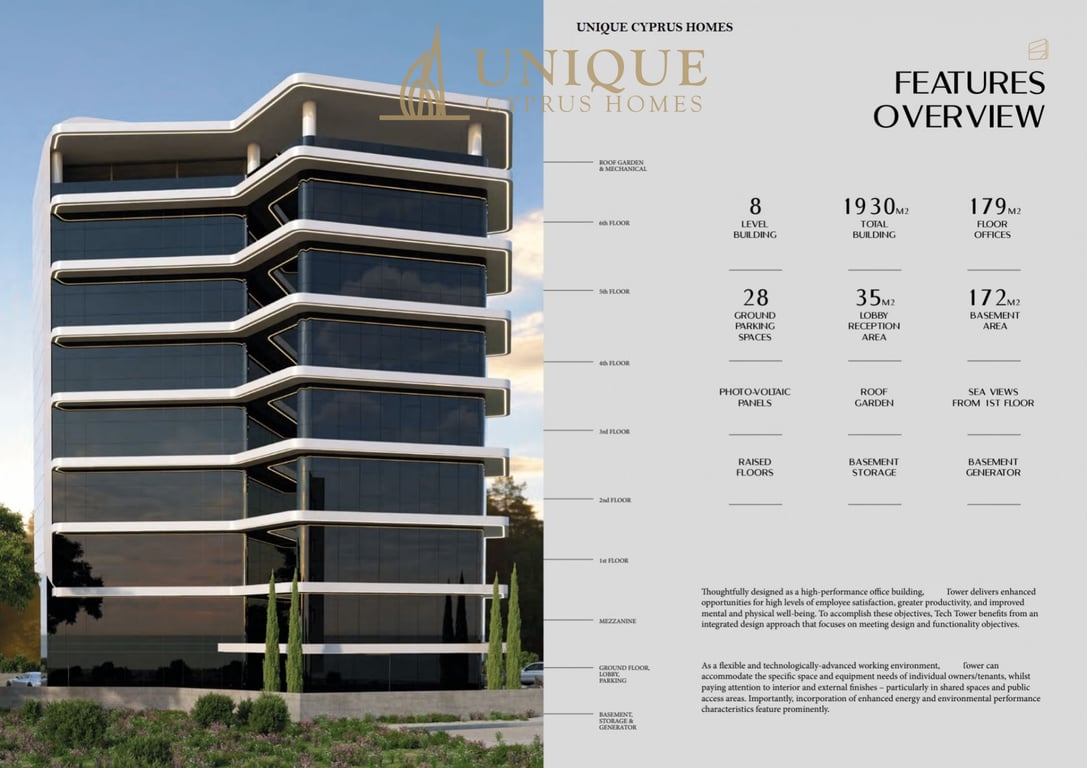 New Commercial Bulding for sale in Limassol Center. This is an EIGHT- storey Tech Tower office building a truly remarkable structure. Purpose - designed to have a profound effect on the productivity and creativity of everyone who works here. UNIQUE office building with a stunning and instantly recognizable facade that makes our project a truly remarkable structure. Purpose-designed to have a profound effect on the productivity and creativity of everyone who works here – it will also leave a sign...