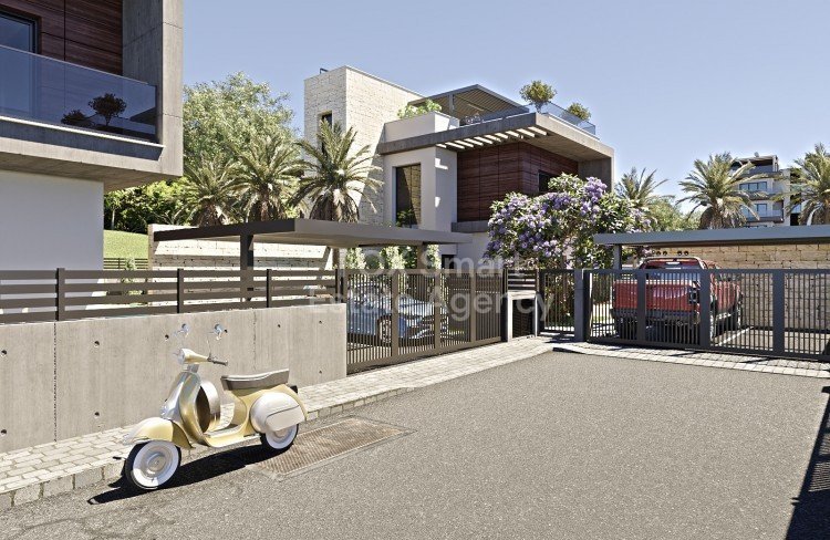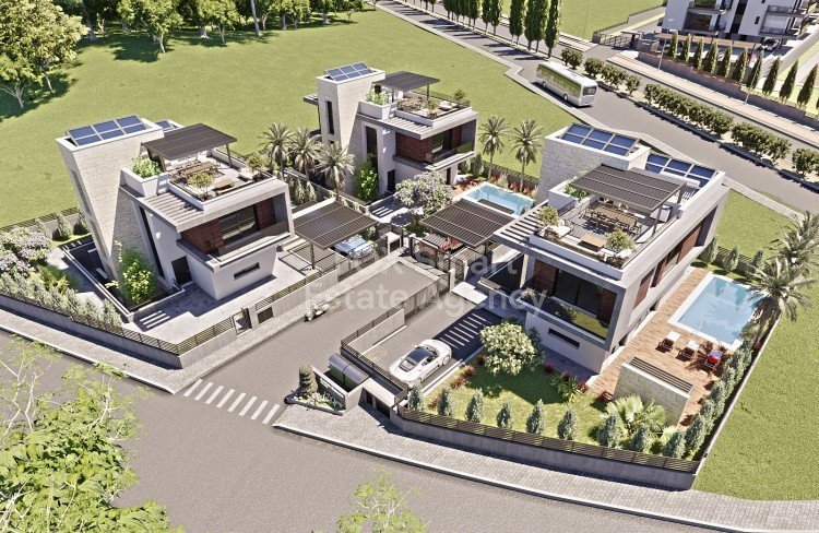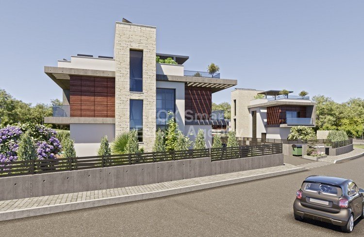 Luxury five-bedrooms villas for residents who prefer detached family houses. Each house has its own garden with everything needed to create a relaxed family home. Bright and spacious, also boast private rooftop terraces, and each has a private swimming pool. All villas are located within a gated complex, complete with green area and a playground for children. Natural materials and a modern design aesthetic bestow villas with a congenial interior. Kitchen and living room are harmoniously combined...