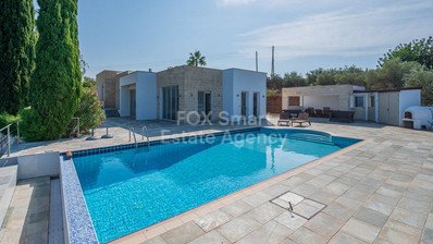 This unique property is a detached bungalow that enjoys unobstructed and panoramic sea views. Positioned in the most beautiful area of the island. Set on an elevated location, the property offers breathtaking views stretching across the Mediterranean Sea and surrounding countryside, creating an exceptional sense of privacy and natural beauty. The property is built in 2008. This charming residence offers a thoughtfully designed living space, ideal for families or buyers seeking comfort, spac...