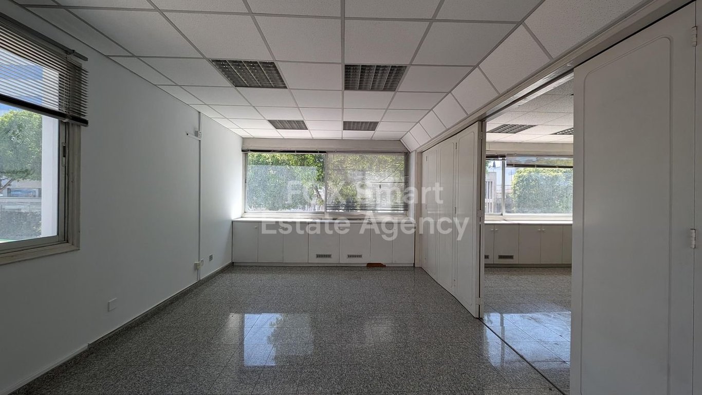 Location • This office space is ideally located in Agios Antonios, right in the heart of Nicosia’s city center. • It benefits from exceptional accessibility and visibility, being situated near to the Civil Registry and Migration Department and in a walking distance from the A’ Technical School of Nicosia. • Key landmarks such as the University of Cyprus campus, Spyrou Kyprianou and Digeni Akrita avenues, and the Lykavitos Primary School are also within short walking distance, enhancing the ...