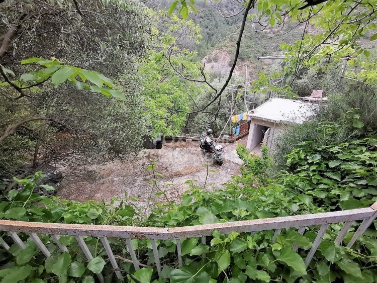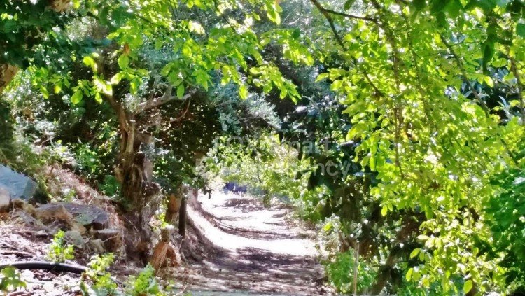 Large land with fruit garden that includes 2 plums, almonds, cherries, walnuts, vines, 2 lemons, 2 mandarins, figs, mushrooms, quince and many olives. Inside the land there is a small holiday house with 1 bedroom which includes a shower, wc and kitchen. In the land there is also a water drilling with a turbine at a depth of 400 feet and the water is drinkable. The land is also connected with the village irrigation system for watering the trees of the land and there is also a big concrete water t...