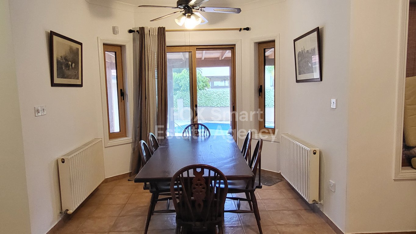 Location - This beautiful single-level home, is located in the peaceful and family-friendly neighbourhood of Nea Ledra, surrounded by open areas, parks and new-build residences. External Features - The house is very well presented, and it is comfortably sitting on a 548sqm corner plot in a very quiet street. - The mature trees, the all-around terraces and the pool area, guarantee the owner privacy and a very pleasant way of life. Internal Characteristics - Internally the house is spread in a s...