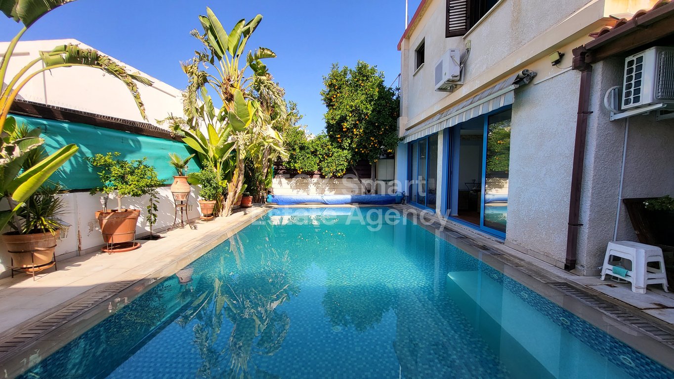 Location - It is located in the most precious area of Nicosia close to Hilton Park Hotel and Ippokratio in Engomi, in a very secure and family friendly neighbourhood. External Features - The house exterior is very well presented as it was fully renovated in 2008 with the most high quality building materials with an overflow heated swimming pool with five jacuzzi jets! Internal Features - The ground-floor consists of a beautiful front yard, leading through the entrance to the cozy living room t...