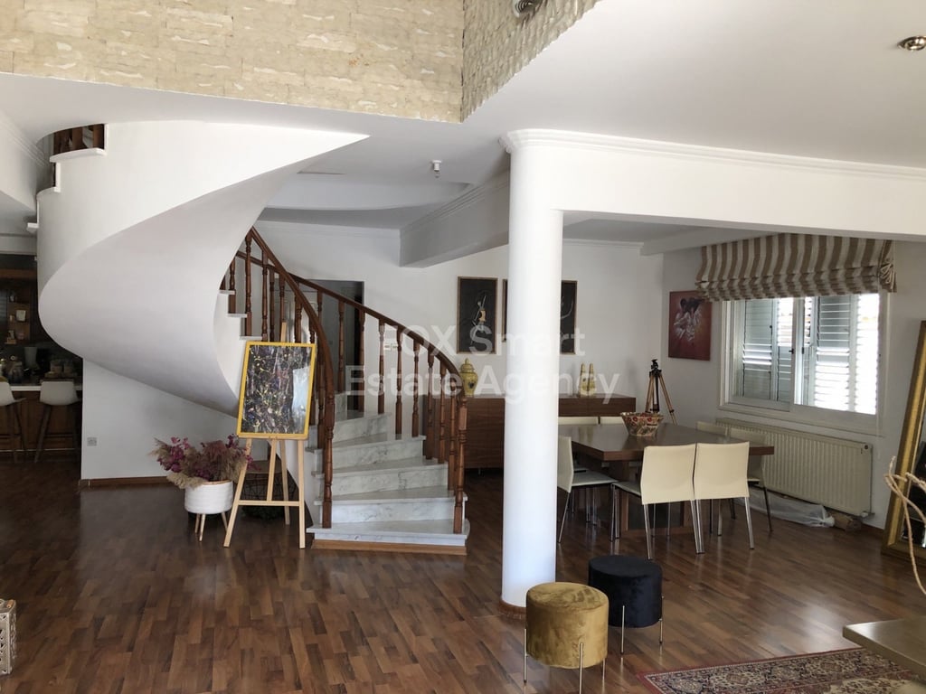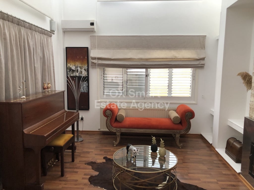 Three-bedroom detached house for in Engomi, Nicosia Location • The house is in Engomi very close to Hilton Park hotel. • Five minutes from the center of Nicosia. • Very close to schools, shops, main streets, supermarkets, bakeries and other amenities. External Features • Well maintained building. • Detached house built in 1992, fully renovated 2018. • Plot of 374 sq .m Internal Characteristics • Detached house. • It consists from lounge, living room with fireplace, dining area, tv room, sep...