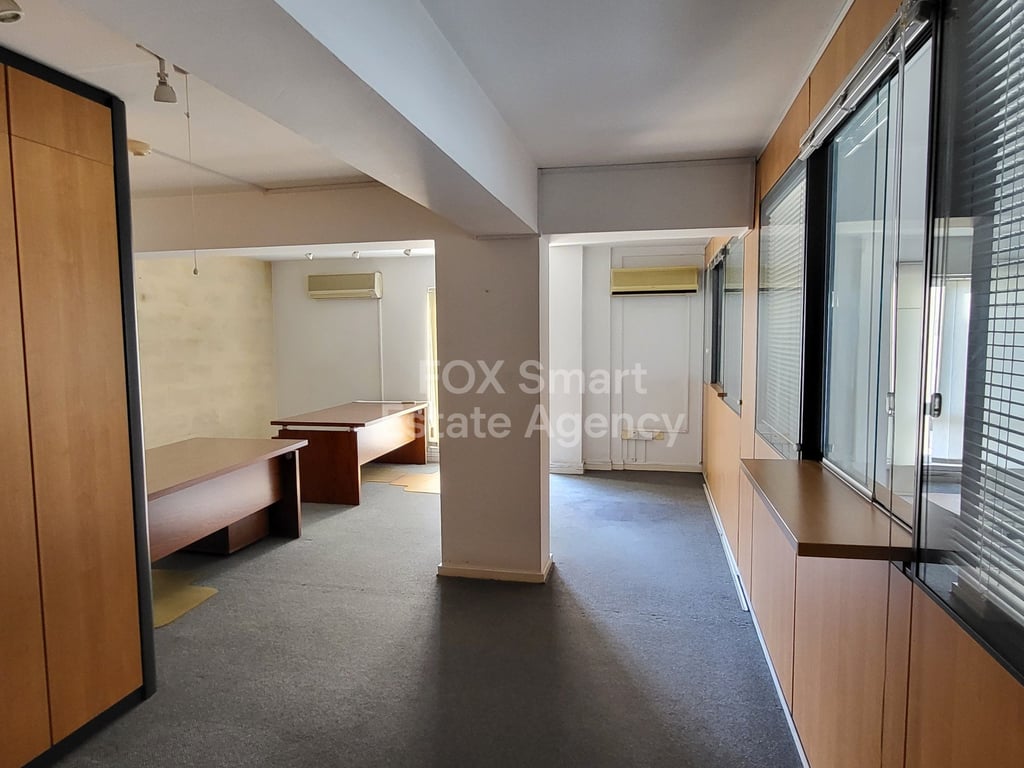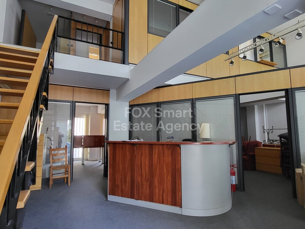 Location • This impressive office located off Makariou Avenue. • Easy accessibility to the highway and to the center of the city. External Features • It is part of a well-presented mixed use building. Internal Characteristics • The office internal area adds up to: 110sqm ground floor area, 75sqm mezzanine level, 75sqm basement • It consists of several working areas, some are suitable for private offices, and some are more spacious and can be used for conference rooms, or group working stations. ...