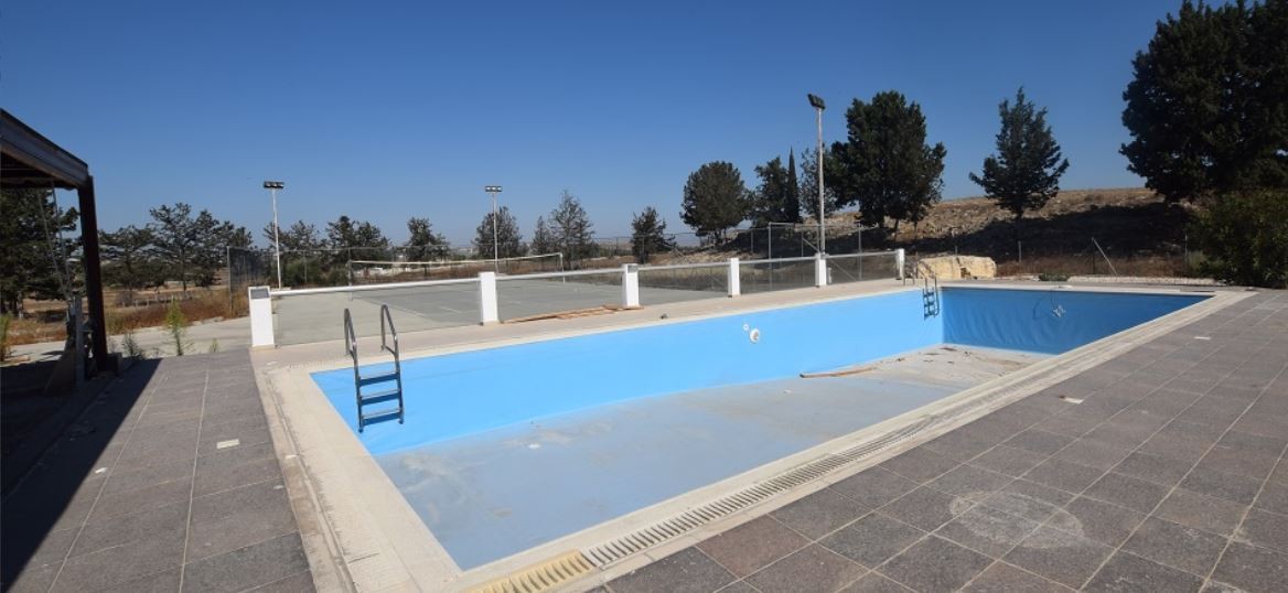 Reference ID: #20453 Price details: €600,000 This sizeable residential property sits on two land plots containing two single storey houses with a swimming pool, a tennis court, a pool house, a storage room and a boiler room. It is located 2km west of the Pascal English School. House A has internal covered area 393 sqm. It consists of a living room, a kitchen, a dining room, four bedrooms with wardrobes (one of which is en-suite), two bathrooms, a guest WC, an office, a laundry room, a stora...