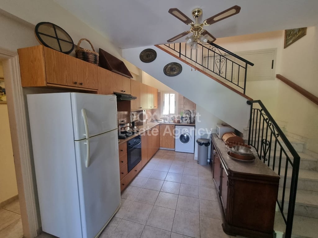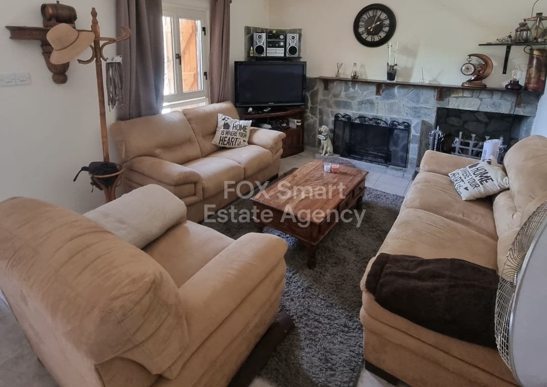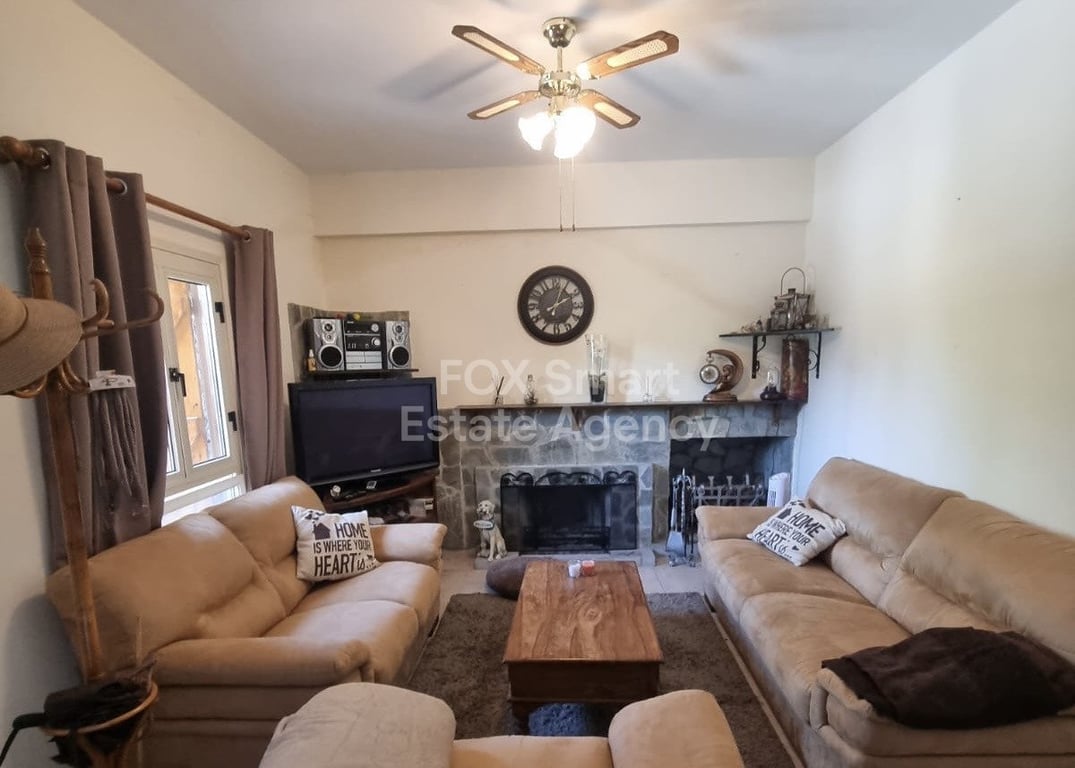 This lovely property is on the border of Kato Platres and Pano Platres, a charming detached home offers privacy, tranquility, and beautiful green surroundings with mature trees and fresh mountain air. 3 Spacious Bedrooms, 2 Bathrooms, Large private yard with mature trees, Fully fenced plot offering privacy and security, Cozy open fireplace, equipped kitchen and sitting, lounge, dining area. Bright balconies with pleasant green views, Covered parking, Storage room.