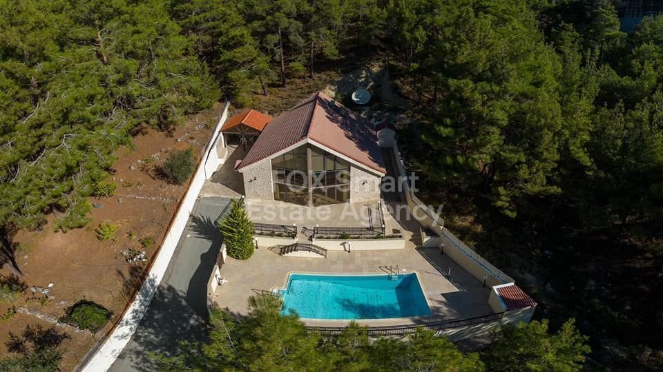 Discover a beautiful and unique luxury home nestled among the forests of Platres, ensuring complete privacy and security with its gated entrance and a private road leading to the residence. This meticulously maintained detached house spans two levels, featuring three bedrooms plus an office or extra bedroom, three bathrooms, a spacious eat-in kitchen, and generous living and dining areas. Abundant storage is provided by two expansive storage rooms. The villa boasts a large private swimming pool ...