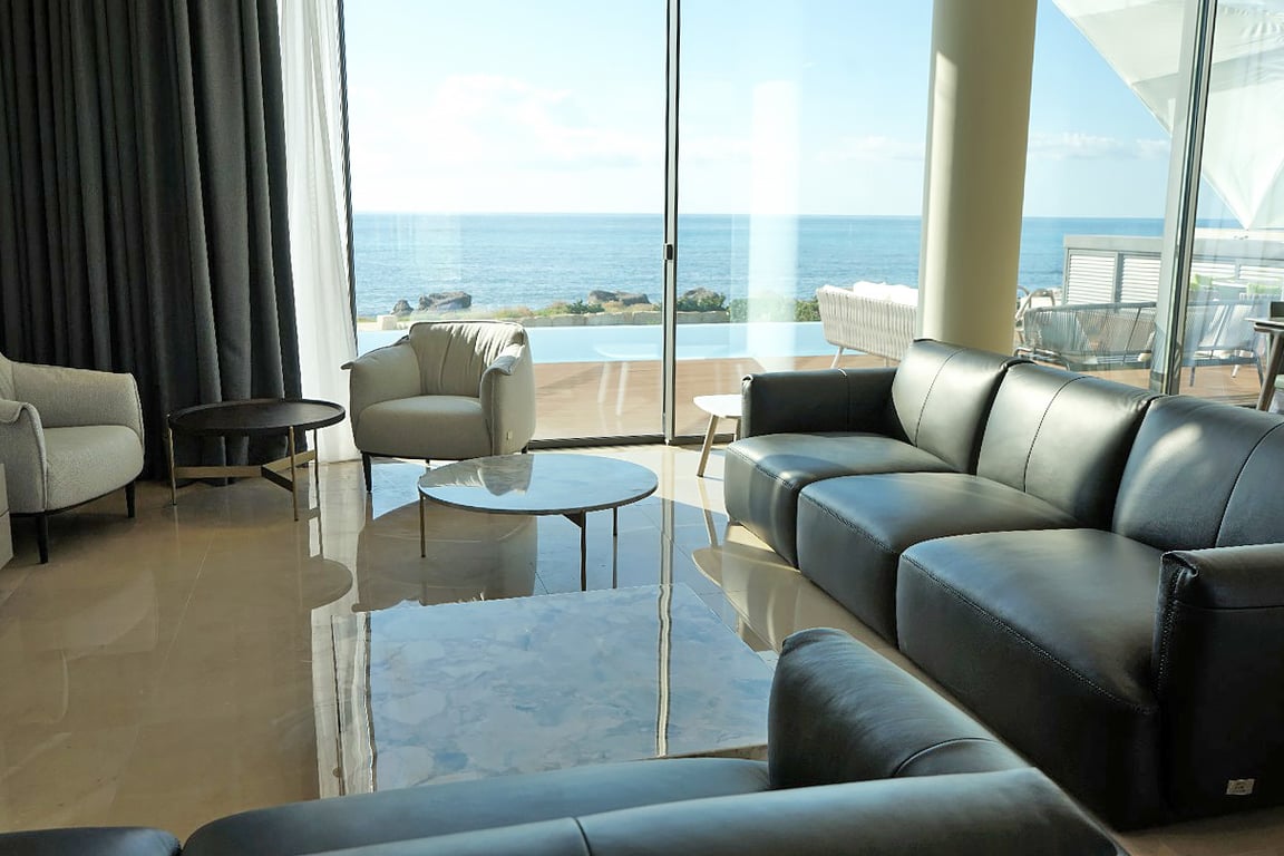 Experience luxury coastal living in this elegant 4 bedroom villa located just steps from the sea in Kato Paphos. Featuring a private pool, spacious interiors, and a beautifully landscaped roof garden with panoramic sea views, this villa offers the perfect blend of comfort, style, and prime beachfront location.