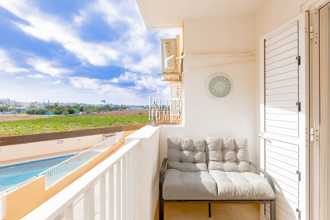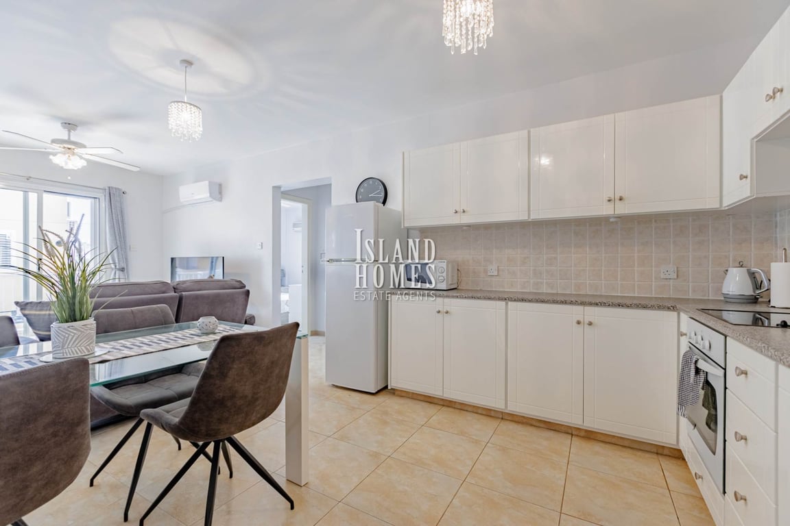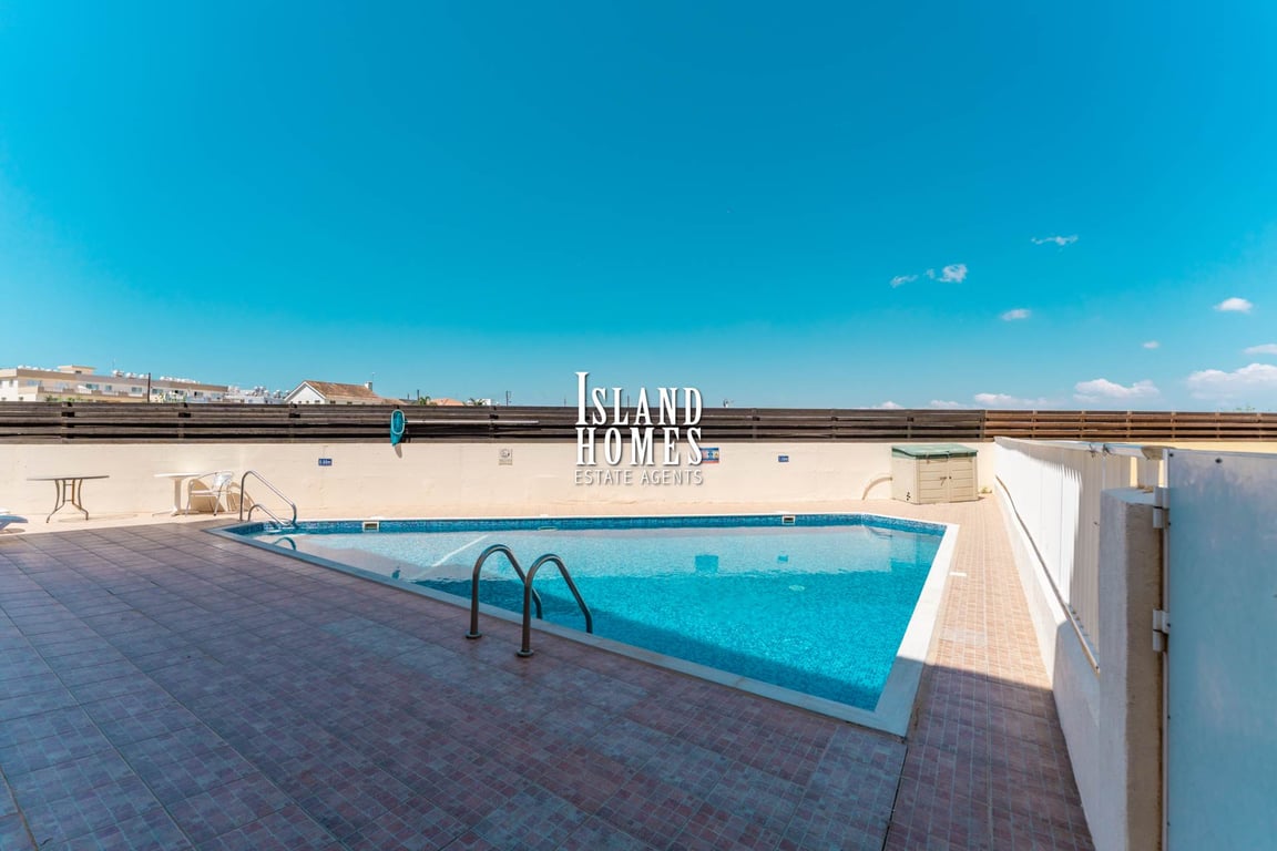 2 bedroom, first floor apartment with communal swimming pool just 1km to the beach, shops and amenities on popular Kapparis complex ANA130Set on the first floor, accessible by lift or stairs in a well maintained block, this beautifully presented apartment is in great condition. The front door enters into the open plan kitchen, dining and living area with patio door access to the balcony. The balcony has a pool view and is a nice extension of the living area when you are searching for a breeze d...