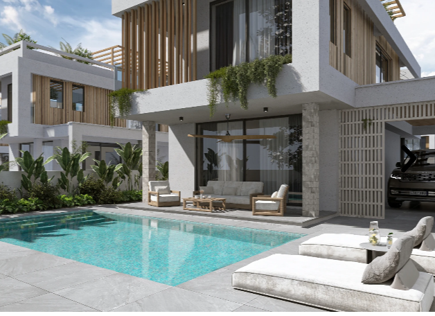 Just a short walk from Agia Triada & Golden Coast beaches and the upcoming Paralimni Marina, this modern villa offers comfort, privacy, and strong investment potential. 3 bedrooms, 3 bathrooms (master en-suite) Generous 274 m2 plot 132 m2 internal covered area + 16 m2 covered veranda 32 m2 roof garden with sea views Private pool & roof garden included in the price Covered parking, provisions for A/C & central heating Located next to a green area, the villa enjoys extra privacy while bein...
