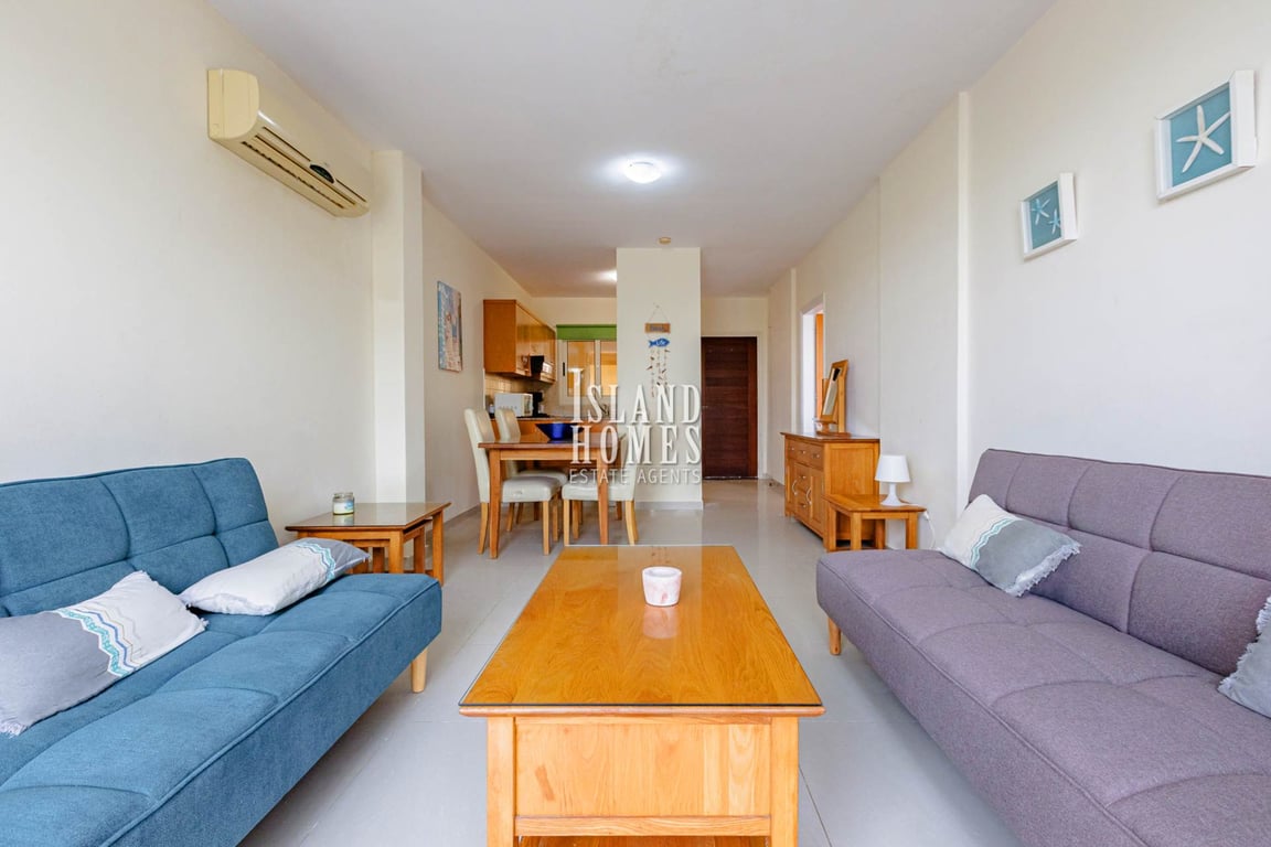 1 bedroom ground floor, garden apartment with SEA VIEWS, communal SWIMMING POOL and TITLE DEEDS with restrictions on popular Kapparis complex - ARM128Located in a quiet corner of a large exclusive complex with stunning communal swimming pool area and underground parking this property ticks all the boxes. The entrance leads into the open plan living and dining area with offset, fully equipped kitchen. The kitchen offers a small partition wall, allowing for a separate U shaped space while also be...