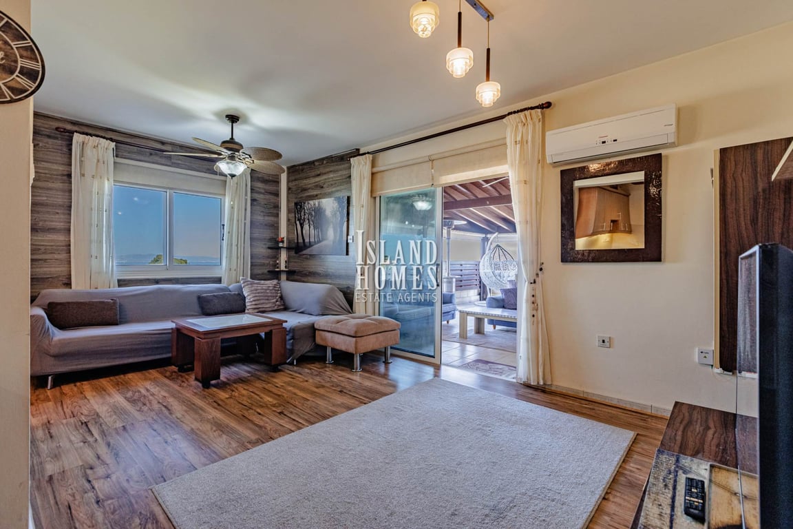 1 bedroom, 2nd floor apartment with SEA VIEWS from the 62m2 veranda, located in a quiet yet convenient area of Kapparis - SOF113Located on the top floor, accessible by lift or stairs this delightful apartment welcomes you in with an open plan layout. The fully equipped kitchen is L shape in design with a handy breakfast bar, ideal for your morning coffee. The spacious living area offers superb sea views and includes patio door access to the veranda. The bedroom is double in size, includes floor ...