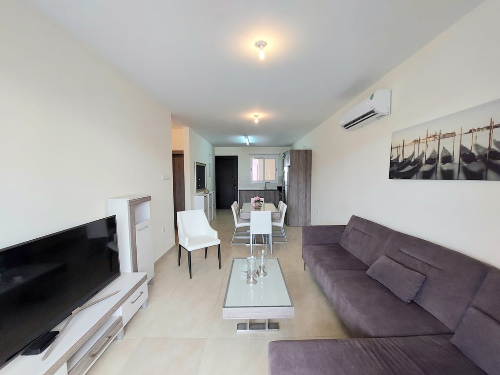 Fully furnished 2 bedroom apartment on a sought after resort complex at the heart of Kapparis, a year-round seaside resort town in the Protaras area . This luxury seaside complex - Mythical Resort with extensive gardens, paths, green areas throughout ,three communal swimming pools, one Olympic sized with separate children’s pool , a fenced playground, a sports field, and a tennis court, all for resident use is perfect for hol idays in the sun. Apartment is only 2 minutes away from many restaur...