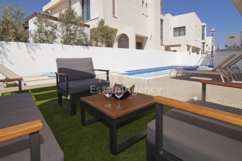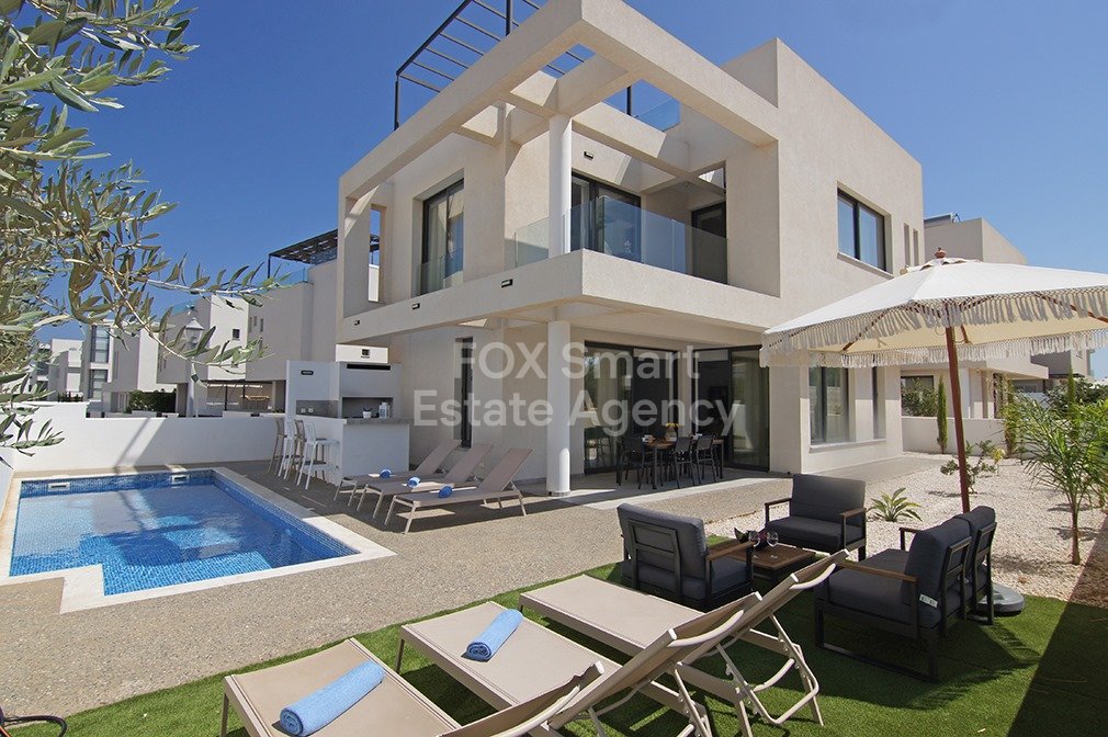 The beautiful villa is near the new Paralamini Marina. Also near the villa are many restaurants and other amenities. -This luxury villa is in a gated community -It has a play ground for the children -Walking distance to the sea -Barbecue area -Key ready to move in -Private pool -Fully furnished inside and outside -Great investment for rental income Property has NO VAT