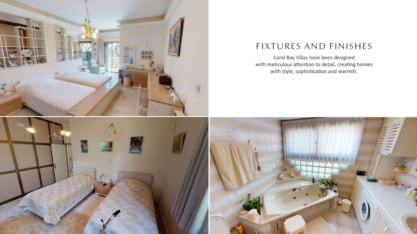 Coral Bay Villa 36Presenting an exquisite villa in the highly esteemed Coral Bay area. This splendid residence boasts three bedrooms and one bathroom, spread across two separate floors. On the ground floor, you will find two bedrooms, a bathroom, a generously-sized dining room, and a separate kitchen. The lower ground floor accommodates the remaining three bedrooms, which offer direct access to the private garden. With a plot size of 819 sqm and a covered area spanning 250 sqm, this property pro...