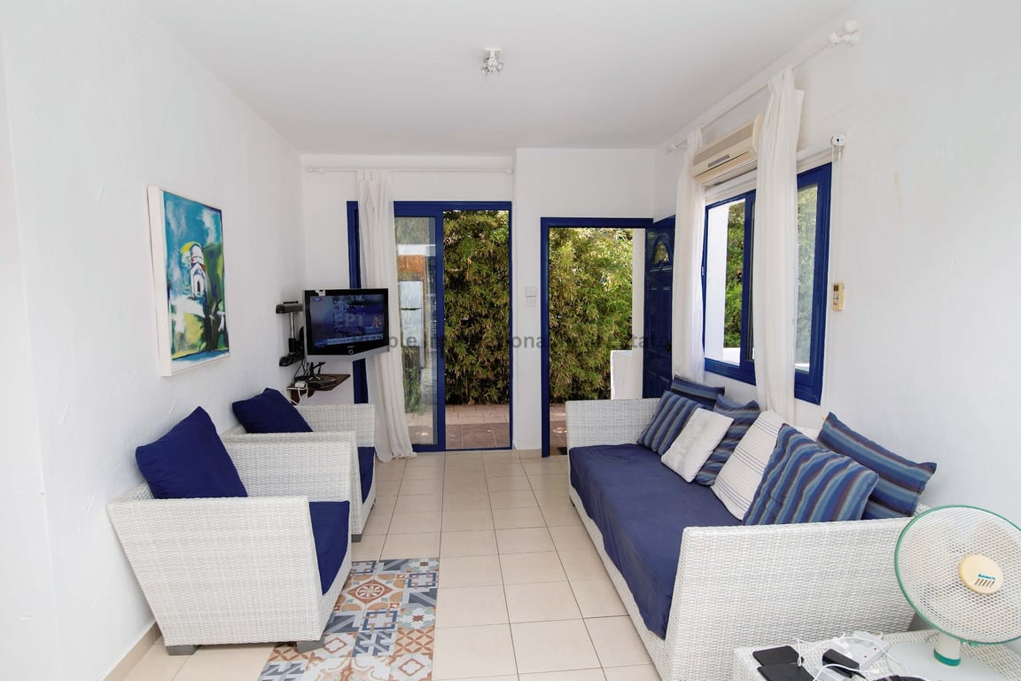 A three bedroom traditional style villa in a prime location of Ayia Triada, very close to the sandy beaches of Ayia Triada. The villa is located on a secure private gated complex, within minutes' walk to the sandy beach which can be accessed by road directly from the complex. Entering the villa is the open plan lounge and dining area with the kitchen partially separated and guest WC on the ground floor. The living areas have veranda doors on both sides which access the garden. The first floor ...