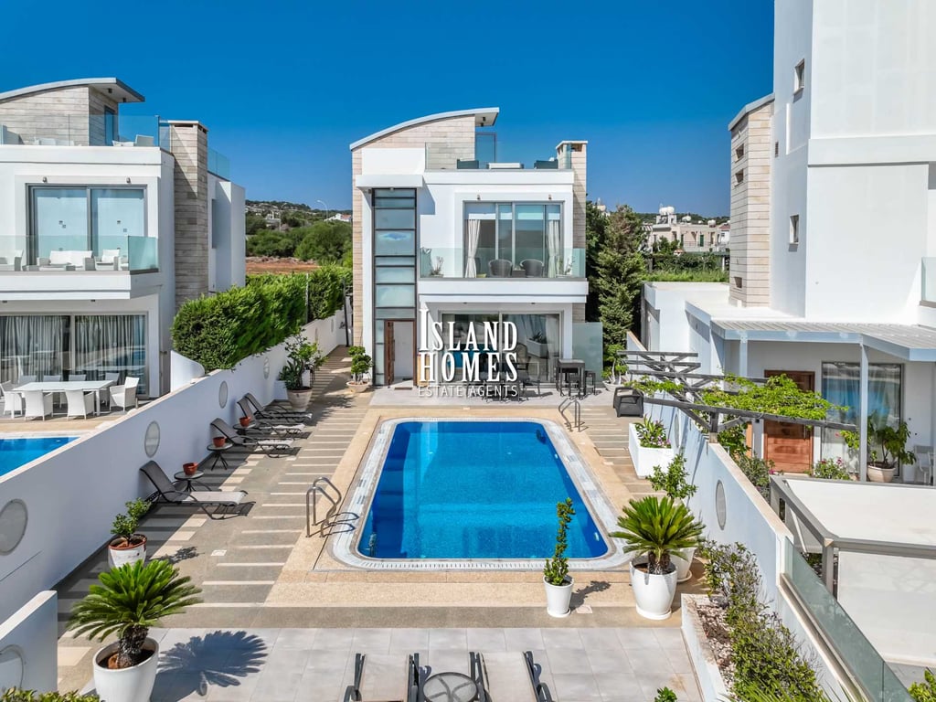 Stunning 5 bedroom, 5 bathroom villa with SEA VIEWS, TITLE DEEDS ready to transfer and the Mediterranean sea just a few hundred metres in away Protaras - LOM107This is a superb opportunity to own a property in the prestigious Protaras sea front area. As you approach this exclusive complex you are greeted by impressive electronic gates, with privacy and security at the forefront, the drive into the complex proceeds to the underground garage. With separate electronic garage doors to each property...