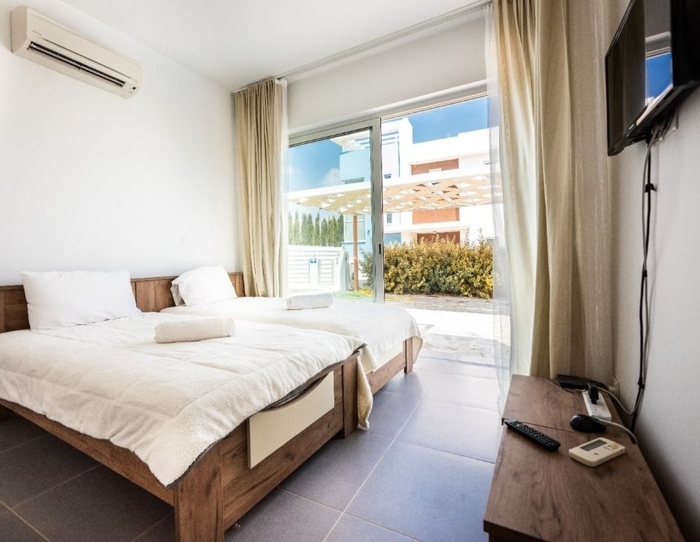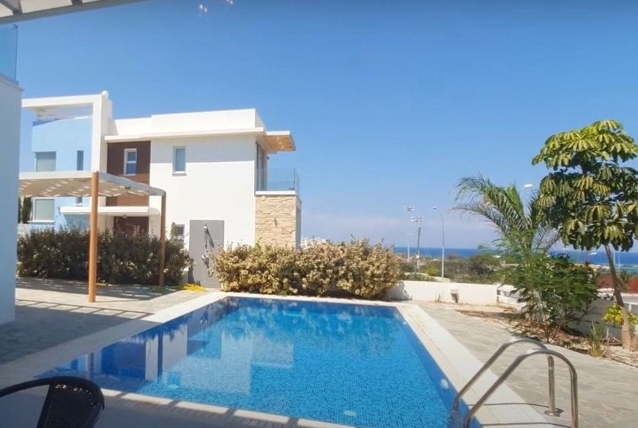 Luxury modern villa with large, private pool and garden in Protaras area.. The villa’s open-concept living space has both interior and exterior dining areas as well as a large sitting area with TV and a fully-equipped kitchen. The living space continues outside to the private dining terrace by the pool. Enjoy spacious bedrooms with built-in storage and large windows. FEATURES Air-Condition Units Balcony Basement Close to Amenities Close to City Center Close to the Beach Communal Swimming Pool...