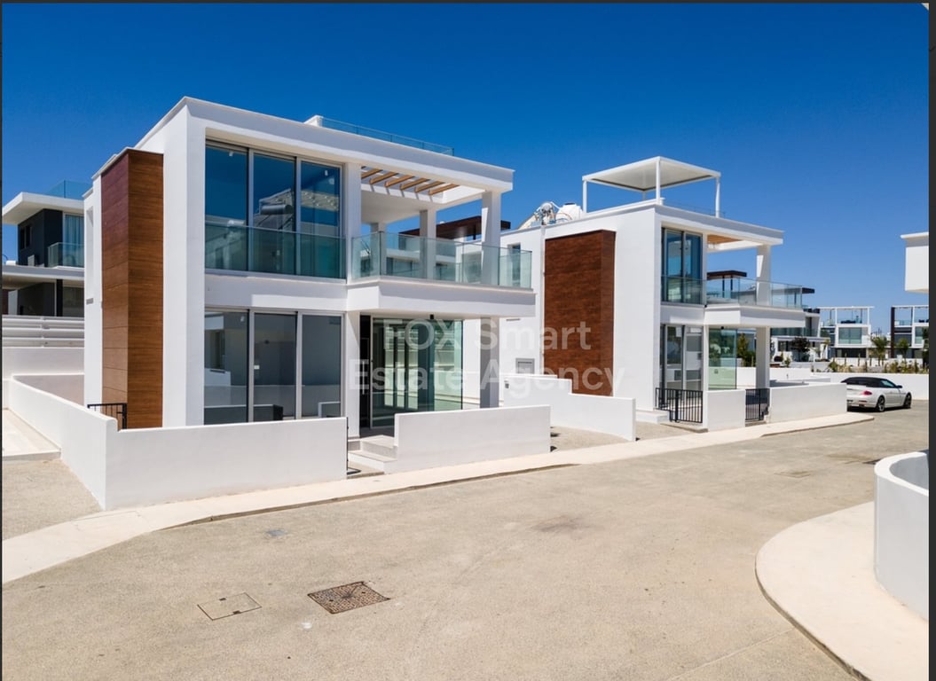 Available stunning four bedroom Villas for sale in Protaras area.A luxury villas of an exclusive private complex located just 250 meters from the sea,the panoramic sea views across the bay of Protaras. Villas offers a large swimming pool and lush landscaping,whilst the pinnacle of these properties is the roof garden which continues the theme of glass fronted, light living. Viewings are available by appointment.