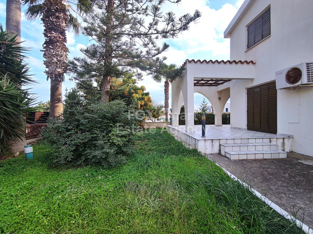 An excellent located 3 Bedroom Detached House of 180sqm. internal area on a large plot of 745sqm. attached to green area and just 250m from the beach. A property with great potential which benefits of its generous outdoor space all around it with covered and uncovered verandas, garden and BBQ area. The ground floor comprises a lounge, a living and dining area with a bar and a fireplace, a separate kitchen, 1 WC and storage space under the staircase and the 1st floor consists of 3 spacious bedr...