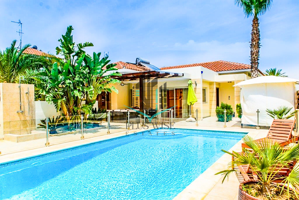 For sale: Spacious resale bungalow in the sought-after area of Pyla. Offering 170 m2 of internal space, this home features four generous bedrooms and three modern bathrooms, making it ideal for both families and those who love to entertain. Located in a secure gated complex, this property ensures a high level of privacy and peace of mind. Step outside to your own private swimming pool, perfect for relaxing or hosting friends on warm evenings. The bungalow also boasts a stunning sea view, provid...